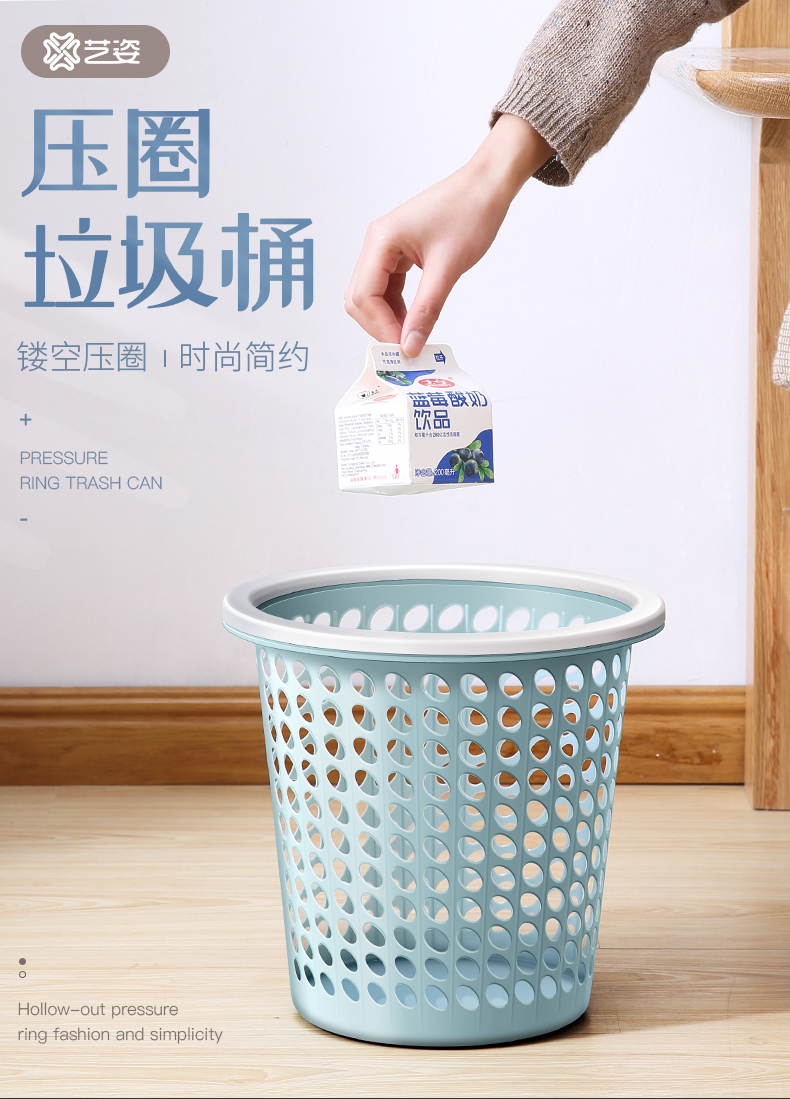 艺姿 家用大号软塑干湿分类压圈垃圾桶圆形纸篓垃圾筒12L YZ-GB105