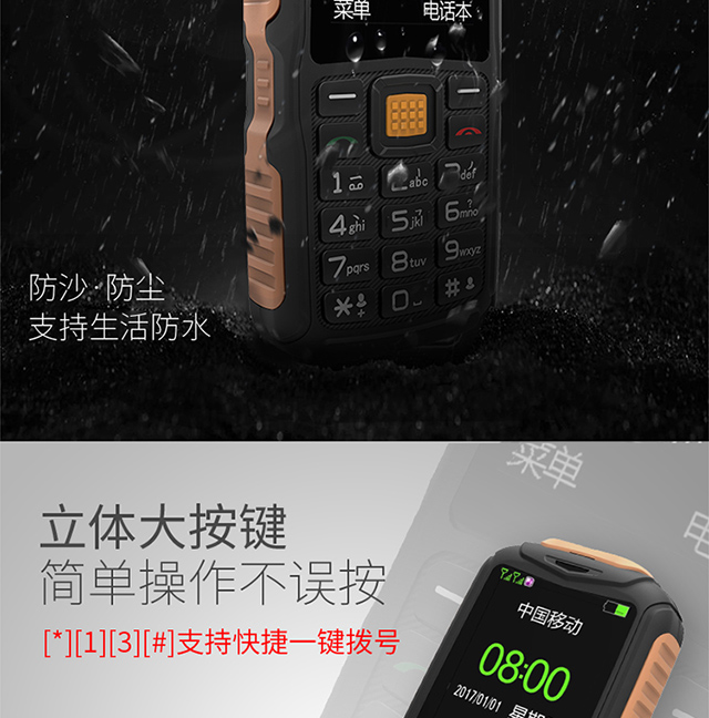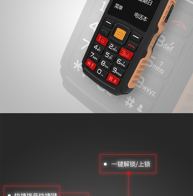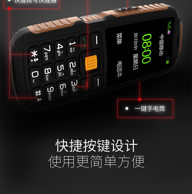 屏占比:<90%;CPU型号:其他;存储卡:支持MicroSD(TF);运行内存:2GB以下;屏幕比例:16:9;后摄主摄像素:其他;前摄主摄像素:无前置摄像头;充电功率:小于12 W;机身存储:8GB以下;屏幕前摄组合:其他;机身颜色:黑色;屏幕尺寸:5.0英寸以下;老人机配置:键盘;摄像头数量:后置单摄;分辨率:标清SD;操作系统:功能机;入网型号 工业代号或者入网型号:angelcare F888;产品名称:F888;上市年份:2017年;上市月份:10月;电池是否可拆卸 不可拆卸电池手机更加节省内部空间,密封性更好,请勿在没有专业人士的帮助下自行拆卸。:电池可拆卸;充电器:其他;无线充电 无线充电只是个功能,请注意支持无线充电的产品其包装是否带有无线充电的配件,如没有需要自行单配哦。:不支持无线充电;不支持反向无线充电;数据传输接口:其他;耳机接口类型:其他耳机;数据线:USB2.0;充电接口类型:Micro USB;NFC/NFC模式:不支持NFC;后摄3摄像素:不支持后摄3;后摄2摄像头的功能:无后摄2摄像头;后摄2摄像素:不支持后摄2;后摄主摄光圈:无光圈;后摄4摄像头的功能:不支持后摄4;后摄4摄像素:不支持后摄4;闪光灯:不支持闪光灯;后摄3摄像头的功能:不支持后摄3;最大支持SIM卡数量:2个;4G+(CA):不支持;网络频率(2G/3G):2G:GSM 900/1800;5G网络:不支持5G;4G网络 单卡手机或者主卡的4G网络在这里填写,副卡的网络在副sim卡4G网络中填写。:不支持4G;双卡机类型:双卡双待单通;3G/2G网络:2G GSM(移动/联通);SIM卡类型 sim卡的规格,大卡、小卡或者nano卡。如果副卡有不同可在下方副卡规格中填写或显示:标准SIM(大卡);副SIM卡3G/2G网络:2G GSM(移动/联通);GPU型号 GPU英文全称GraphicProcessingUnit,中文翻译为图形处理器。:MT6261D;CPU品牌:联发科(MTK);机身长度(mm):137;机身重量(g):198;机身材质工艺:PC;机身宽度(mm):58;机身材质分类:塑胶后盖;机身厚度(mm):27;运营商标志或内容 定制机往往会有运营商的元素在手机的某些位置,该属性会介绍这些元素出现的位置。:在外包装;机身;输入方式:键盘;常用功能:计