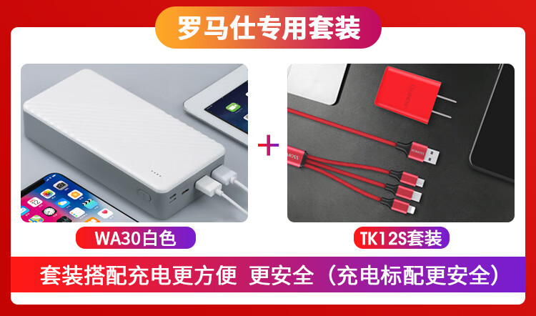 电芯类型:锂聚合物电池;功能:TYPE-C输入;容量:25000毫安时及以上;外壳材质:塑料;双向快充 不仅支持快速输出,也支持快速输入:不支持双向快充;USB接口数:双口;苹果输入 支持苹果接口为移动电源充电:支持苹果输入;TYPE-C输入 支持TYPE-C接口为移动电源充电:支持TYPE-C输入;电量数字显示:不支持电量数字显示;额定容量:18000mAh;颜色:白色;型号 产品型号:WA30;电池容量(mAh):30000mAh;产品尺寸(mm):167*81*32.8;产品净重(g):672;包装清单:移动电源*1、说明书*1;