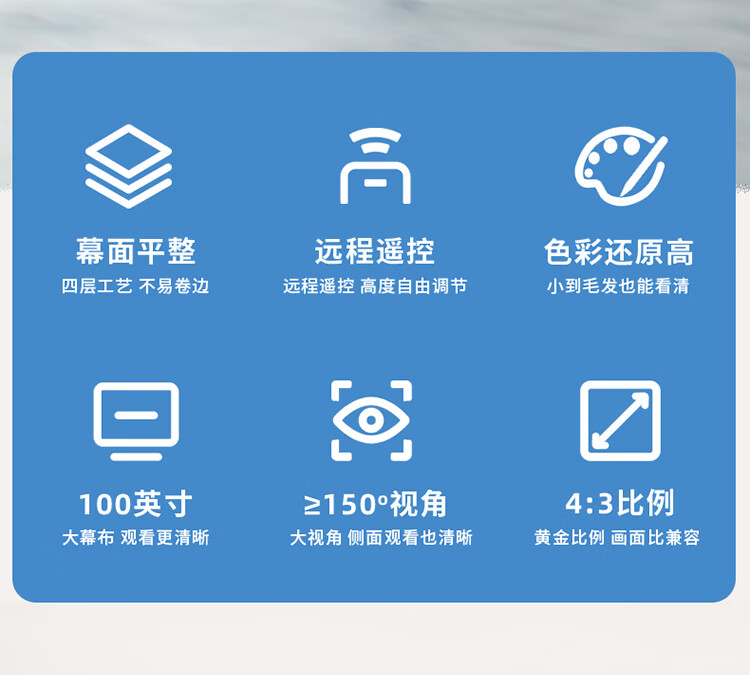 产品类别:幕布;幕布比例:4:3;幕布尺寸:100英寸;幕布分类:电动;幕布材质:白塑;价格范围:400-699;控制距离:20-49米;品牌:得力(deli);颜色:白色;产品净重(kg):7.44;型号:50440;包装清单:投影幕布×1;