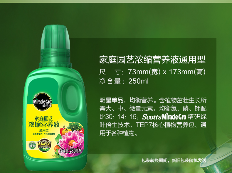 性状:液体;营养类型:营养液;适用对象:多肉植物,兰科植物,通用型,蔬菜水果,观花植物,观叶植物,盆景;品牌:美乐棵;包装清单:商品×1;