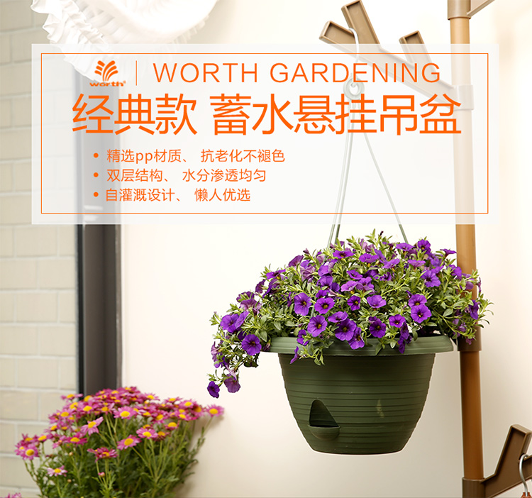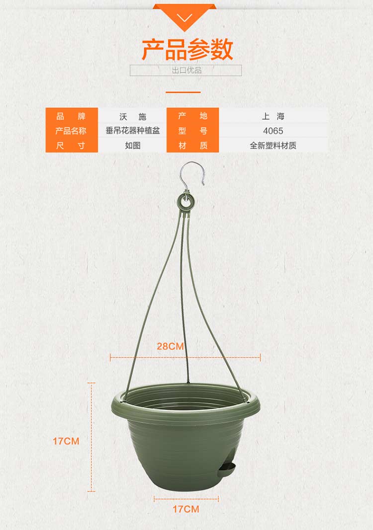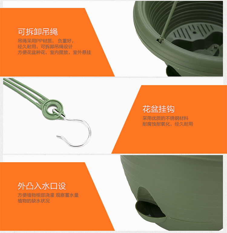 附加功能:拆装,悬挂,旋转,其它;尺寸:中等;材质:塑料;适用空间:桌面,垂吊;风格:简约,现代,田园,古典,中国风,欧式,其它;包装清单:吊勾x1,吊线x1,花盆x1;
