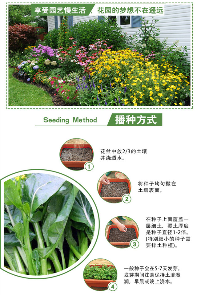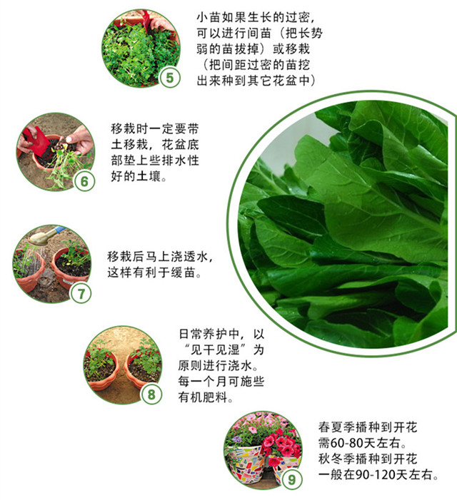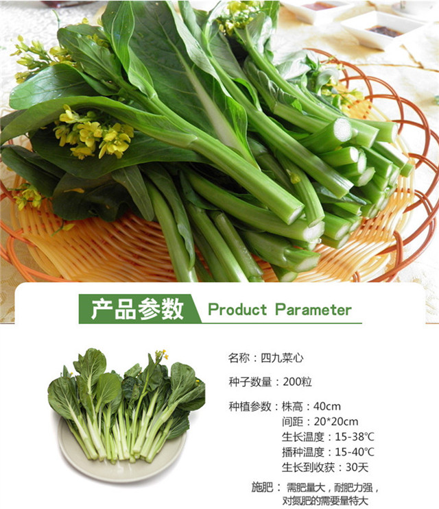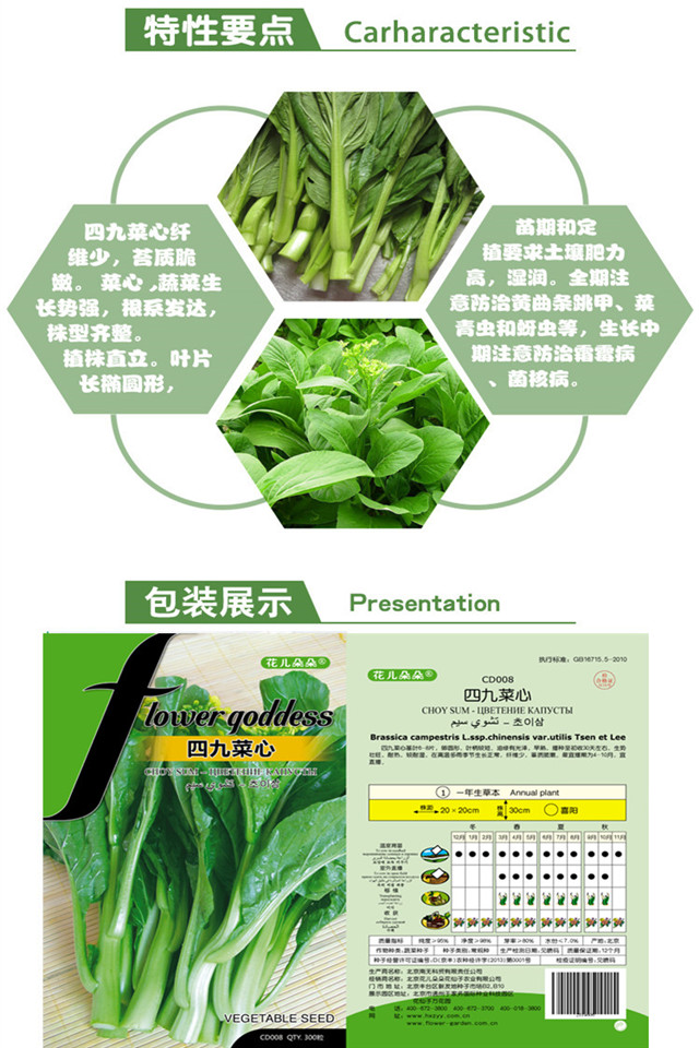 适播季节:春;国别:国产;类别:常规种子;种类:叶菜类;适种区域:东北;种子经营许可证编号:D京丰农种经许字2013第0001号;包衣:无包衣;检疫证明编号:11010600201500040;芽率(%):89%;生产年份(年):2019年;水分(%):7.4%;净度(%):94.7%;纯度(%):96.4%;包装清单:种子一袋;