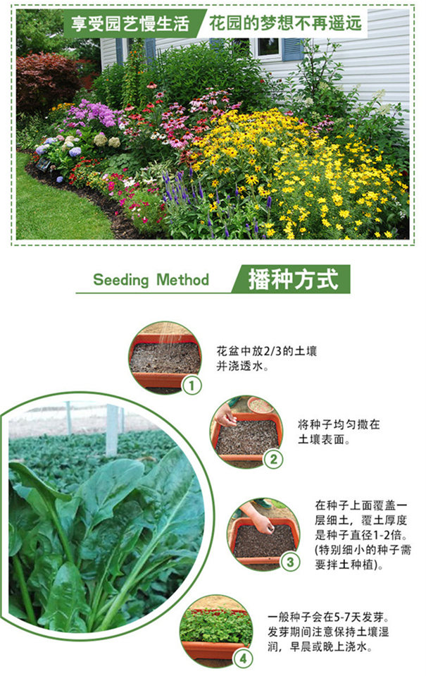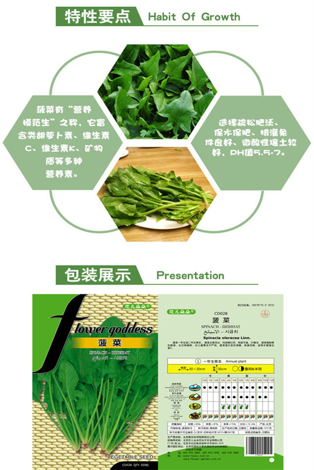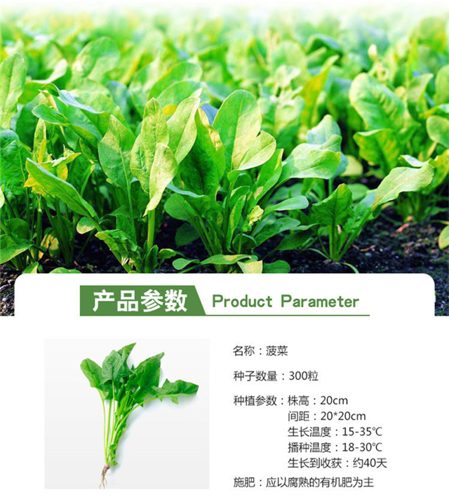 适播季节:春;国别:国产;类别:常规种子;种类:叶菜类;适种区域:东北;种子经营许可证编号:D京丰农种经许字2013第0001号;包衣:无包衣;检疫证明编号:11010600201500040;芽率(%):89%;生产年份(年):2019年;水分(%):7.4%;净度(%):97.3%;纯度(%):94.2%;包装清单:种子一袋;