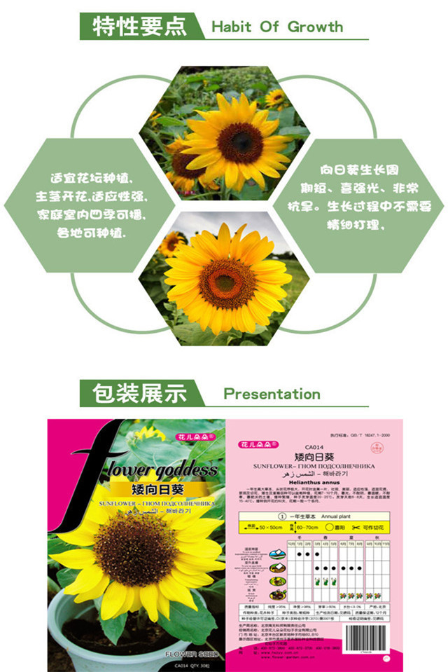 适播季节:春;国别:国产;类别:常规种子;种类:草花;适种区域:东北;种子经营许可证编号:D京丰农种经许字2013第0001号;包衣:有包衣;生产年份(年):2019年;芽率(%):89;水分(%):8.6%;净度(%):96.5%;纯度(%):97.3%;包装清单:种子一袋;