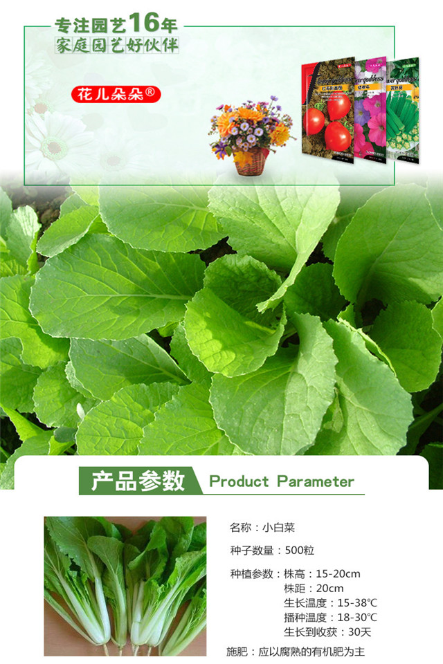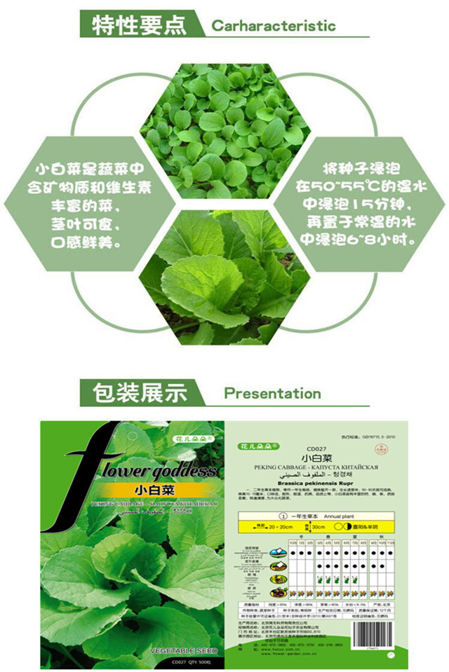 种类:叶菜类;适种区域:东北,华北,华中,华东,华南,西南,西北;适播季节:春,夏,秋;国别:国产;类别:常规种子;种子经营许可证编号:D京丰农种经许字2013第0001号;包衣:无包衣;检疫证明编号:11010600201500040;芽率(%):88%;生产年份(年):2019年;水分(%):8.9%;净度(%):96.9%;纯度(%):97.6%;包装清单:种子一袋;