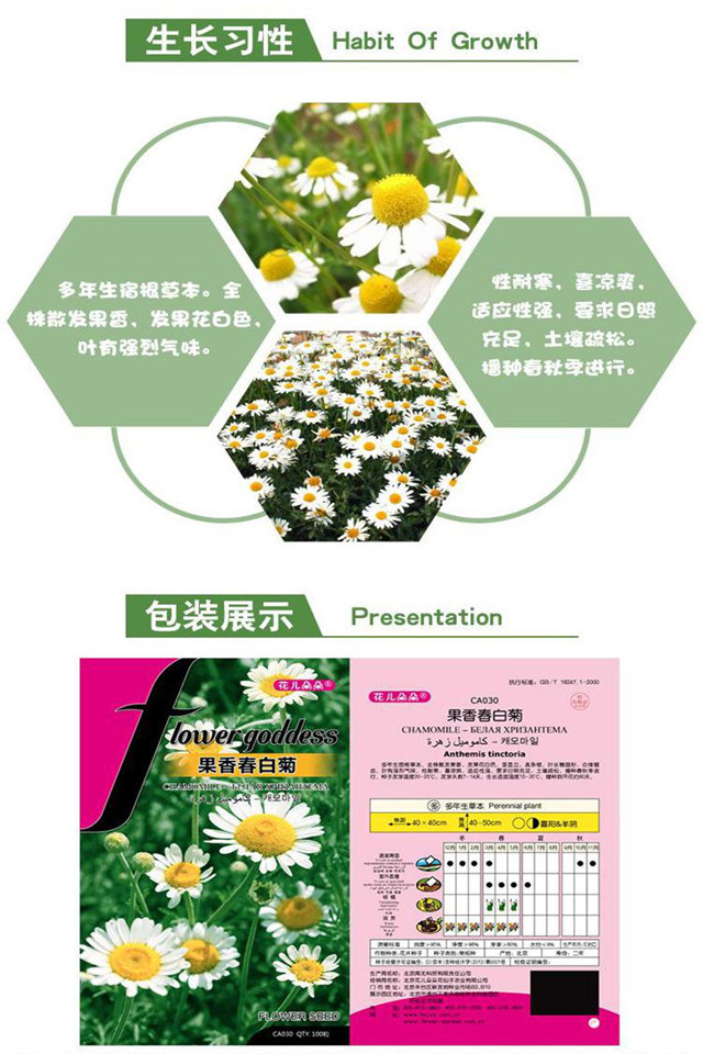 种类:宿根花卉;适种区域:东北,华北,华中,华东,华南,西南,西北;适播季节:春,夏,秋;国别:国产;类别:常规种子;种子经营许可证编号:D京丰农种经许字2013第0001号;包衣:无包衣;生产年份(年):2019年;芽率(%):90;水分(%):7.8%;净度(%):94.3%;纯度(%):95.1%;包装清单:种子一袋;