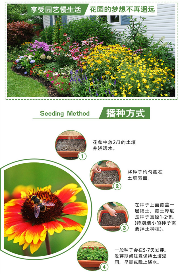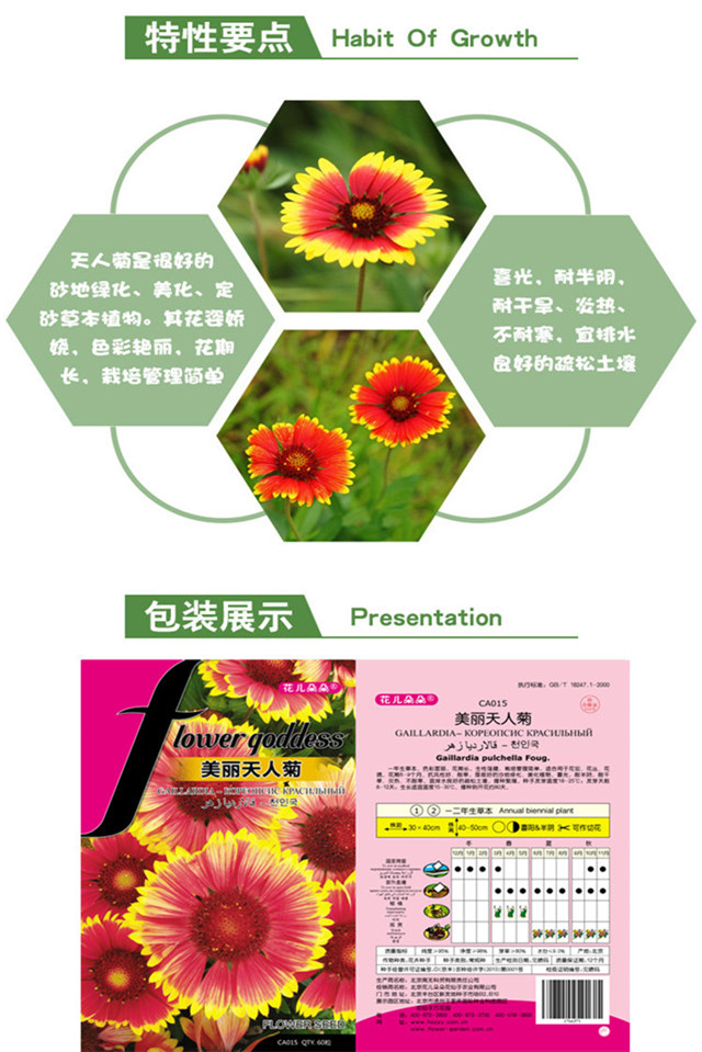 种类:草花;适种区域:东北,华北,华中,华东,华南,西南,西北;适播季节:春,夏,秋;国别:国产;类别:常规种子;种子经营许可证编号:D京丰农种经许字2013第0001号;包衣:无包衣;生产年份(年):2019年;芽率(%):90;水分(%):8.5%;净度(%):96.3%;纯度(%):94.1%;包装清单:种子一袋;