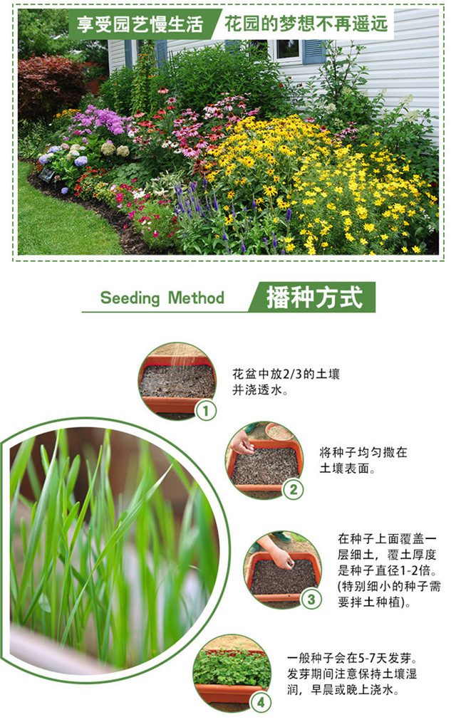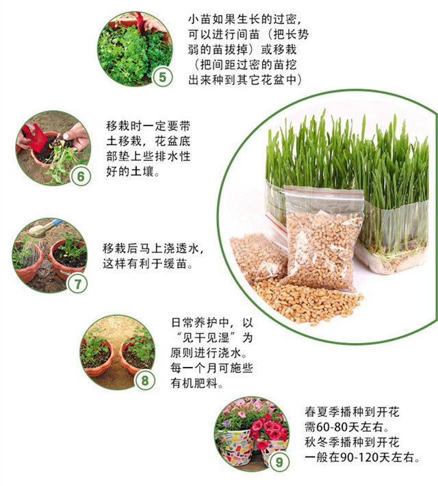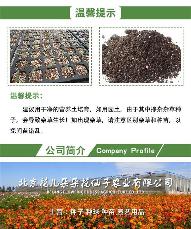 适播季节:春;国别:国产;类别:常规种子;种类:草花;适种区域:东北;种子经营许可证编号:D京丰农种经许字2013第0001号;包衣:无包衣;生产年份(年):2019年;芽率(%):90;水分(%):7.8%;净度(%):96.3%;纯度(%):94.5%;包装清单:种子一袋;