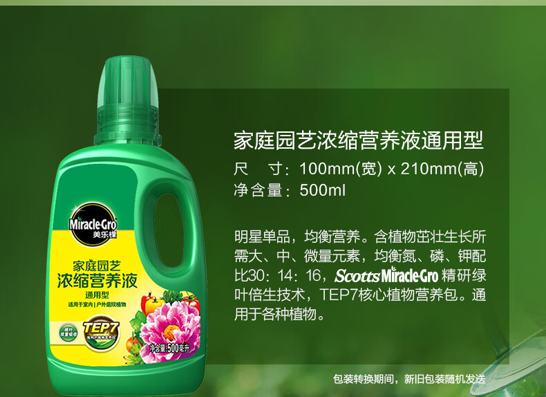 性状:液体;营养类型:营养液;适用对象:观叶植物,观花植物,蔬菜水果,盆景,多肉植物,兰科植物,通用型;品牌:美乐棵;包装清单:商品×1;