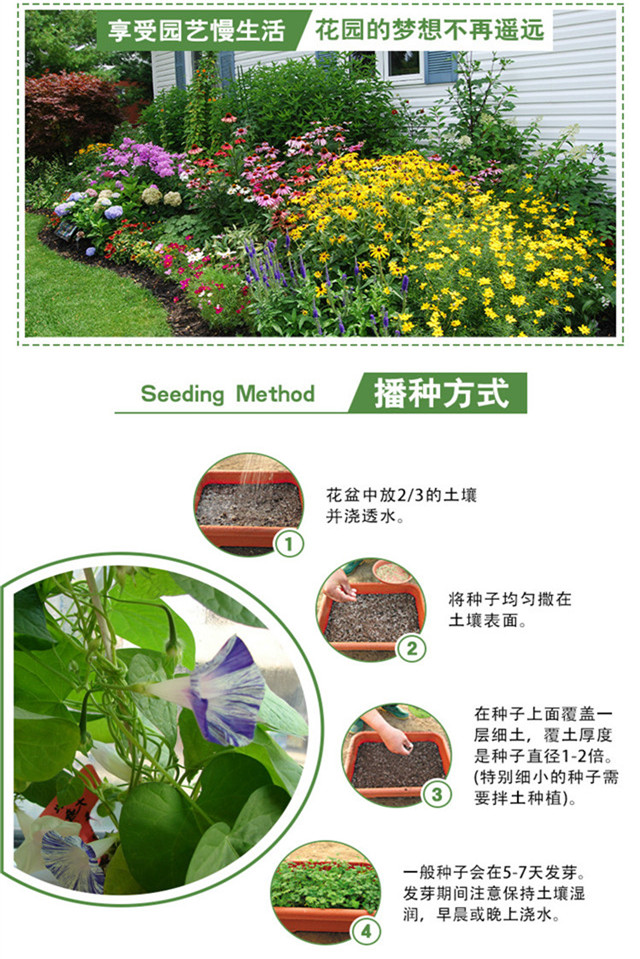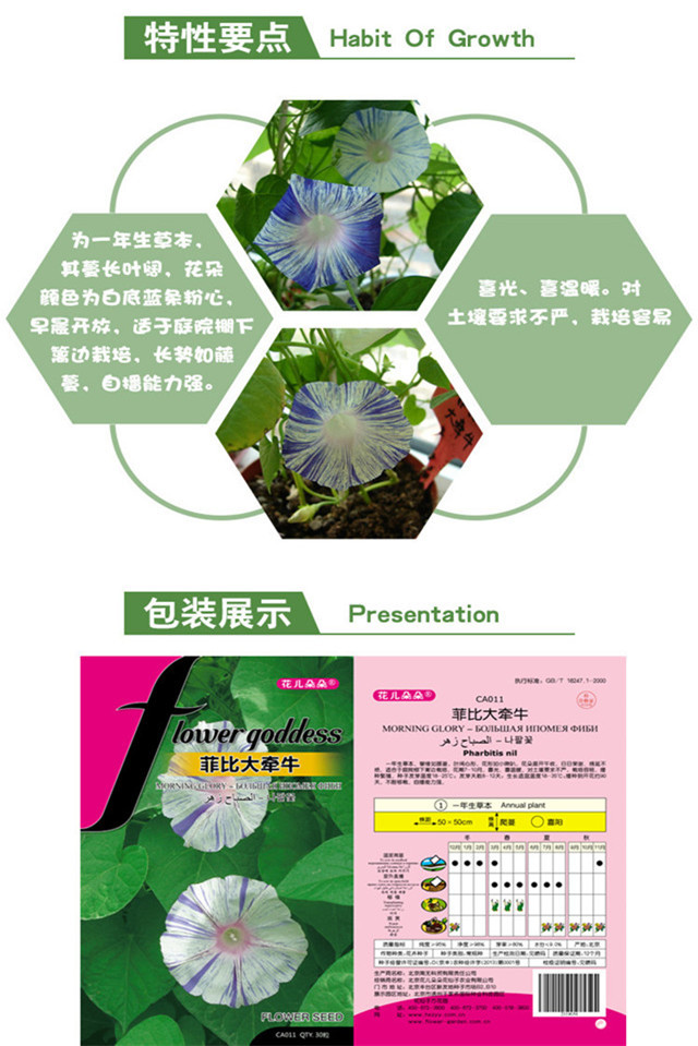 种类:草花;适种区域:东北,华北,华中,华东,华南,西南,西北;适播季节:春,秋;国别:国产;类别:常规种子;种子经营许可证编号:D京丰农种经许字2013第0001号;包衣:无包衣;生产年份(年):2019年;芽率(%):90;水分(%):7.4%;净度(%):91.6%;纯度(%):94.1%;包装清单:种子一袋;