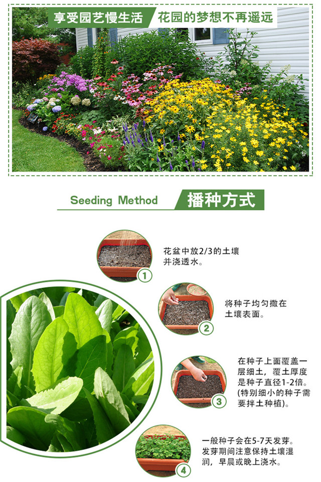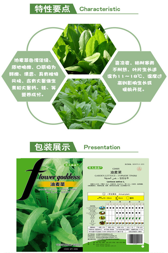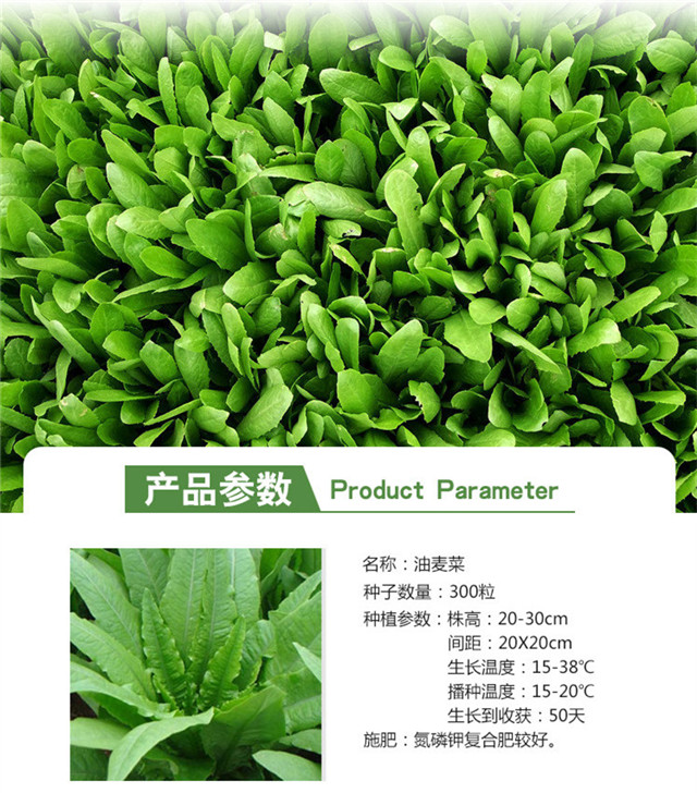 适播季节:春;国别:国产;类别:常规种子;种类:叶菜类;适种区域:东北;种子经营许可证编号:D京丰农种经许字2013第0001号;包衣:无包衣;检疫证明编号:11010600201500040;芽率(%):87%;生产年份(年):2019年;水分(%):8.4%;净度(%):94.4%;纯度(%):94.3%;包装清单:种子一袋;