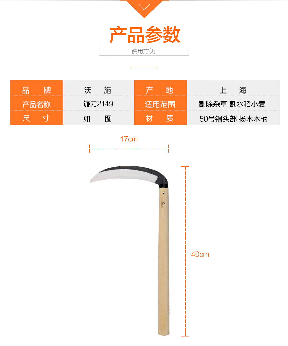 分类:刀/剪/锯;品牌:沃施(worth);包装清单:全钢刃镰刀 x 1;
