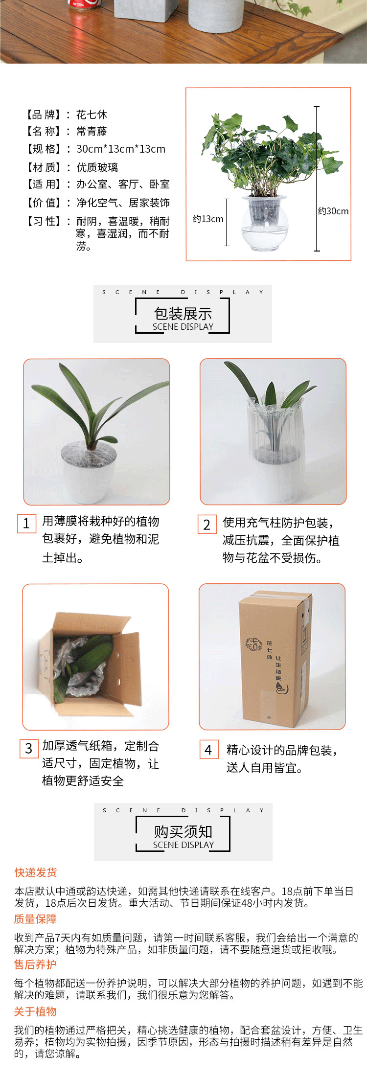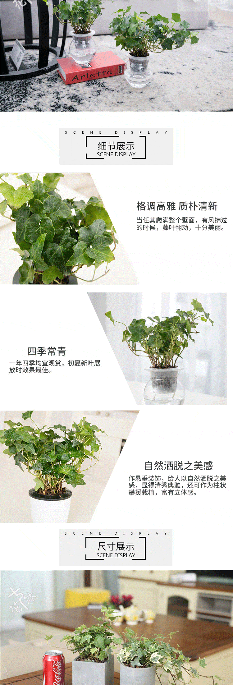 是否含花盆:带盆栽好;适用空间:庭院,阳台,客厅,办公桌,卧室,书房;包装清单:水培系列—常青藤*1,花盆*1,包装箱*1;