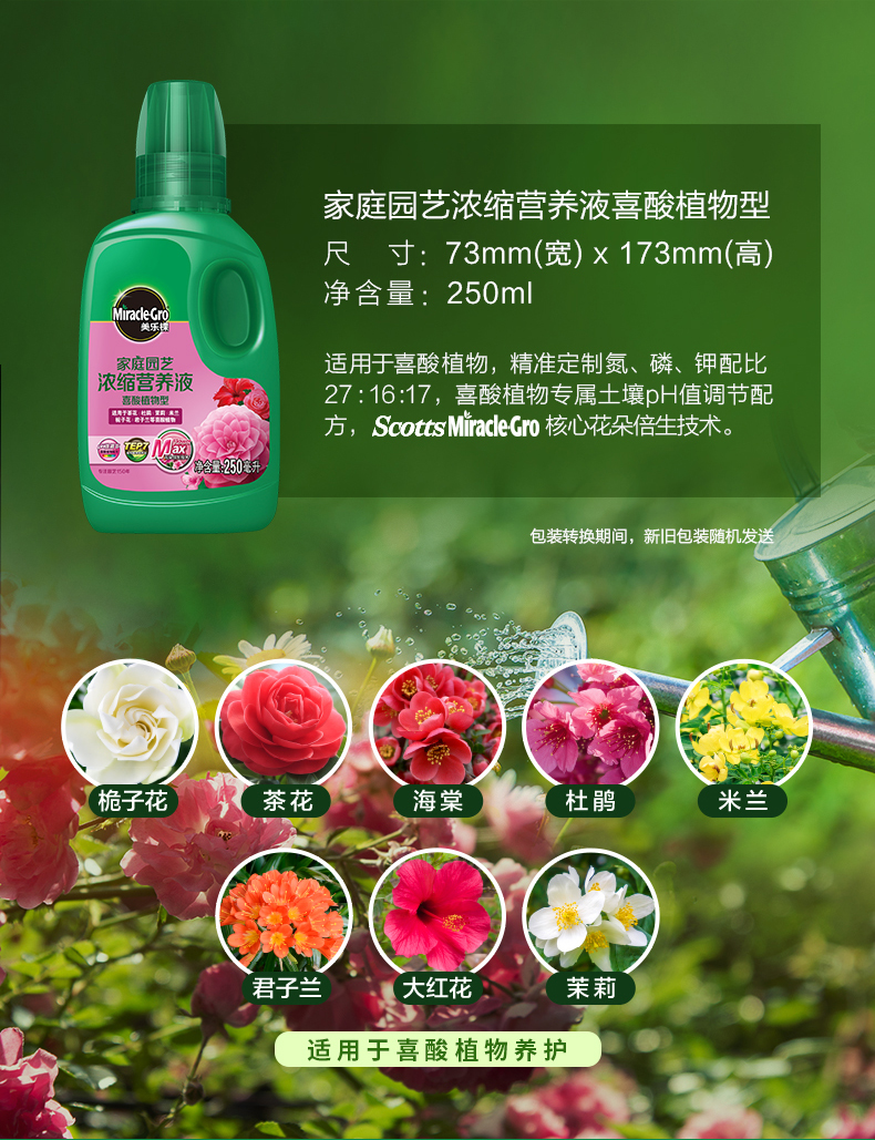 适用对象:观花植物;性状:液体;营养类型:营养液;品牌:美乐棵;包装清单:商品X1;