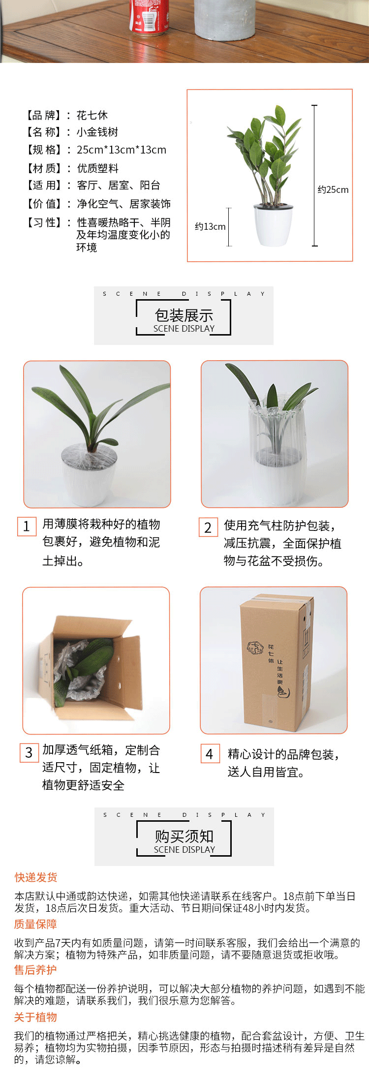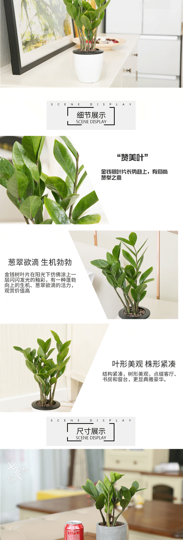 是否含花盆:带盆栽好;适用空间:庭院,阳台,客厅,办公桌,卧室,书房;包装清单:小金钱树*1,花盆*1,包装箱*1;