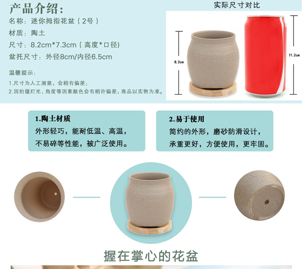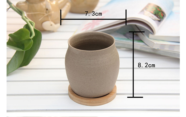风格:简约;附加功能:其它;尺寸:小;材质:陶瓷;适用空间:桌面;包装清单:花盆X1,木托X1;