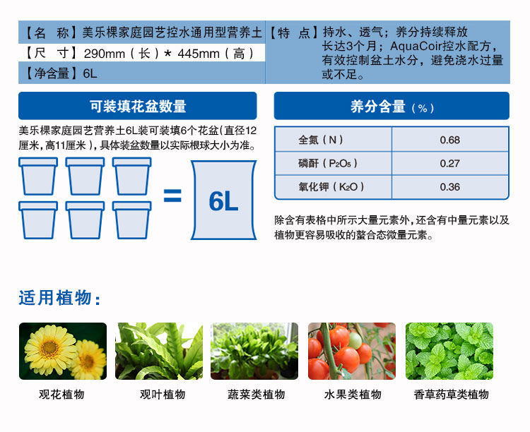 类型:椰糠;品牌:美乐棵;包装清单:商品X1;