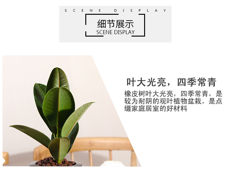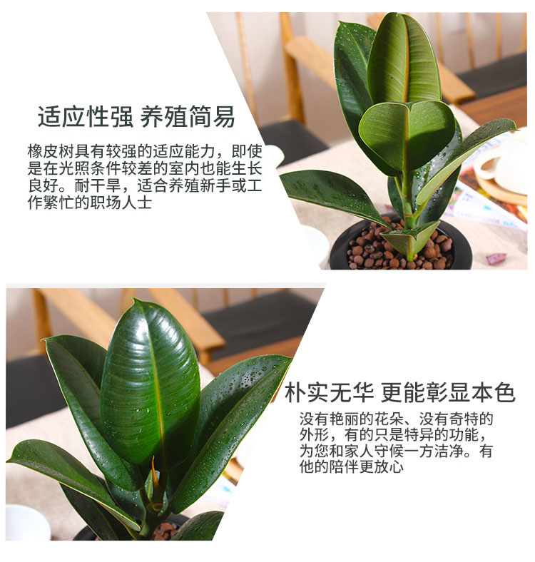 是否含花盆:带盆栽好;适用空间:庭院,阳台,客厅,办公桌,卧室,书房;包装清单:小橡皮树*1,花盆*1,包装箱*1;
