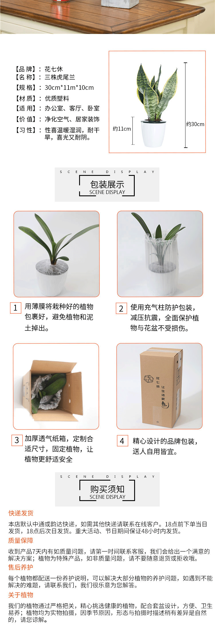 是否含花盆:带盆栽好;适用空间:庭院,阳台,客厅,办公桌,卧室,书房;包装清单:三株虎尾兰*1,花盆*1,包装箱*1;
