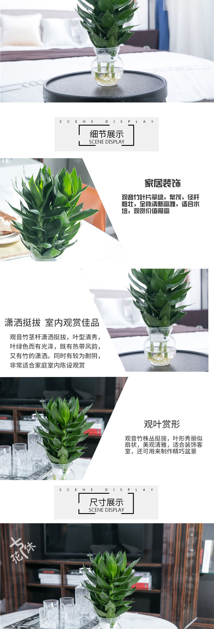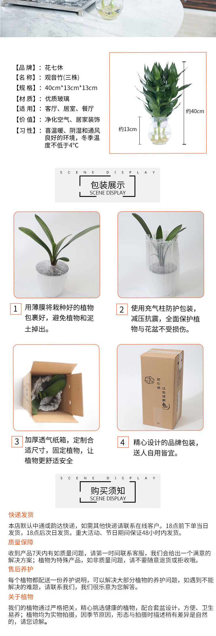 是否含花盆:带盆栽好;适用空间:庭院,阳台,客厅,办公桌,卧室,书房;包装清单:水培系列—观音竹*1,花盆*1,包装箱*1;