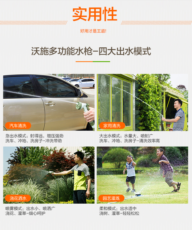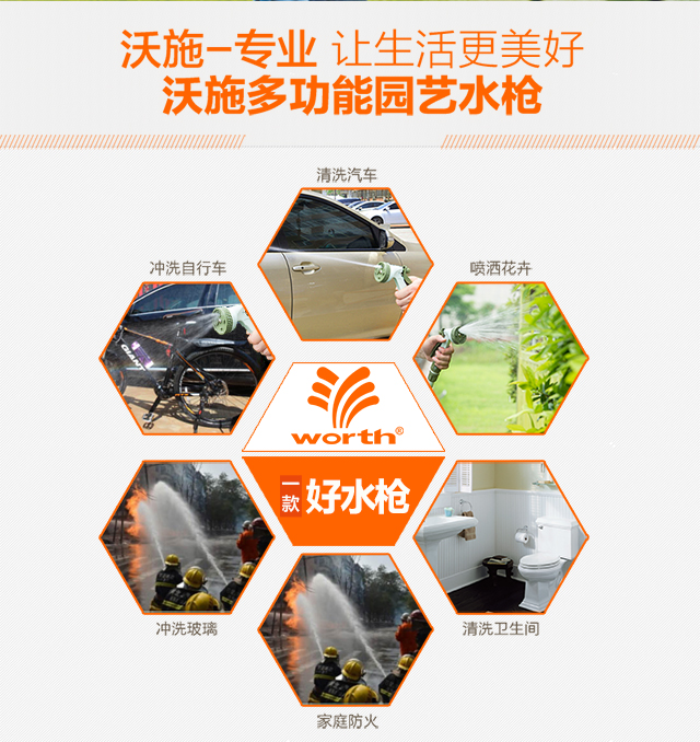 分类:水枪/水管/水管车;品牌:沃施;包装清单:10米四分水管X1,四功能喷枪X1,快速止水接头X1,快速接头X1,内螺纹龙头接头X1,龙头接头X1;