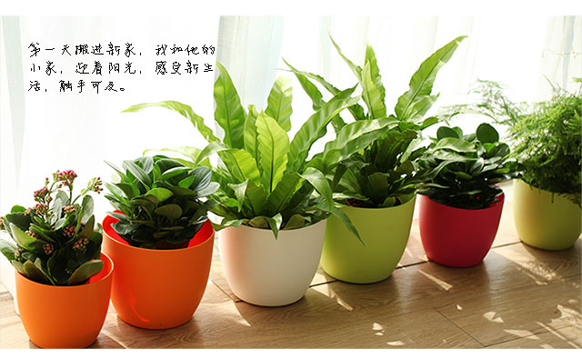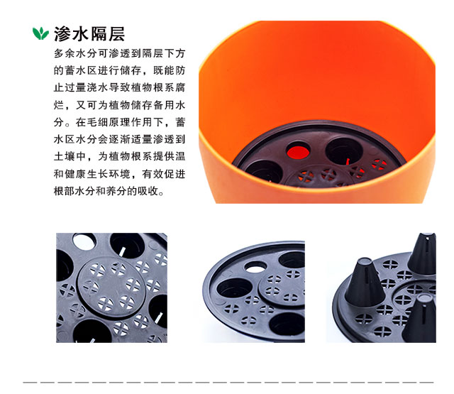 美乐棵 花盆 圆形 自灌溉室内桌面盆栽 多肉盆栽植物 桌面盆景彩色花盆2.2L 橙色