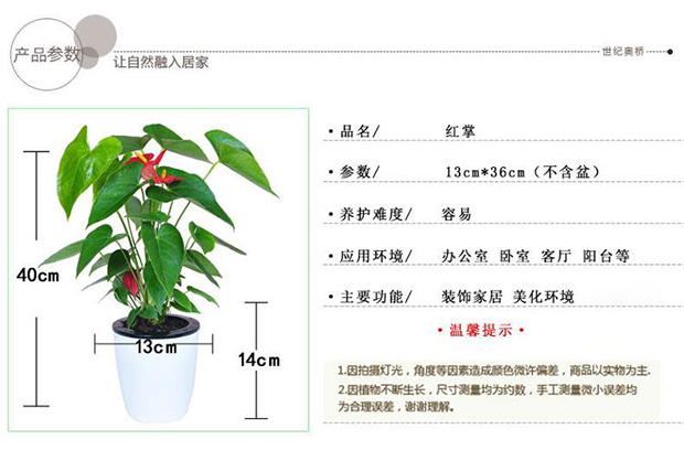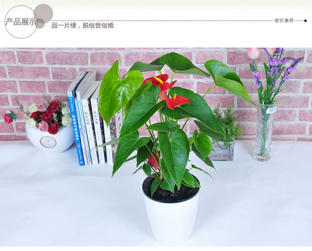 植物品种:红掌;是否含花盆:含盆;植物类别:观叶植物;适用空间:阳台,客厅,办公桌,书房;包装清单:粉掌X1 、M5盆X1;
