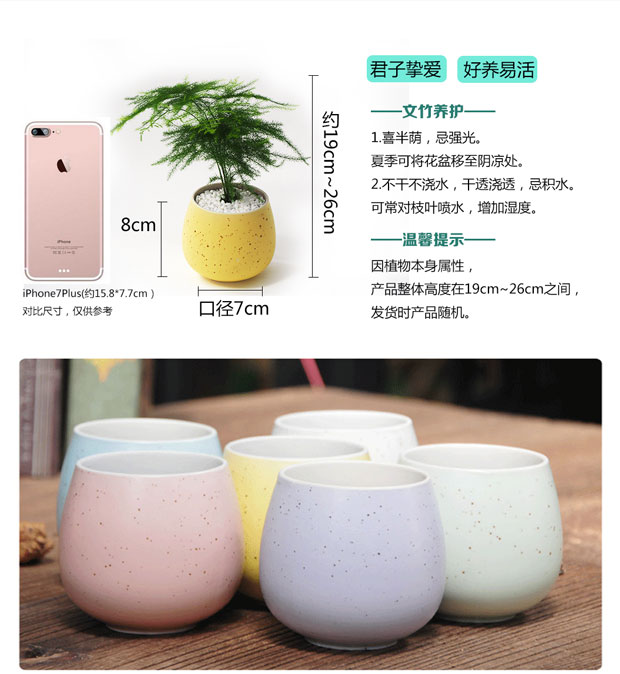 植物品种:文竹;是否含花盆:含盆;植物类别:观叶植物;适用空间:阳台,客厅,办公桌,卧室,书房;包装清单:文竹X1,花盆X1,托盘X1;