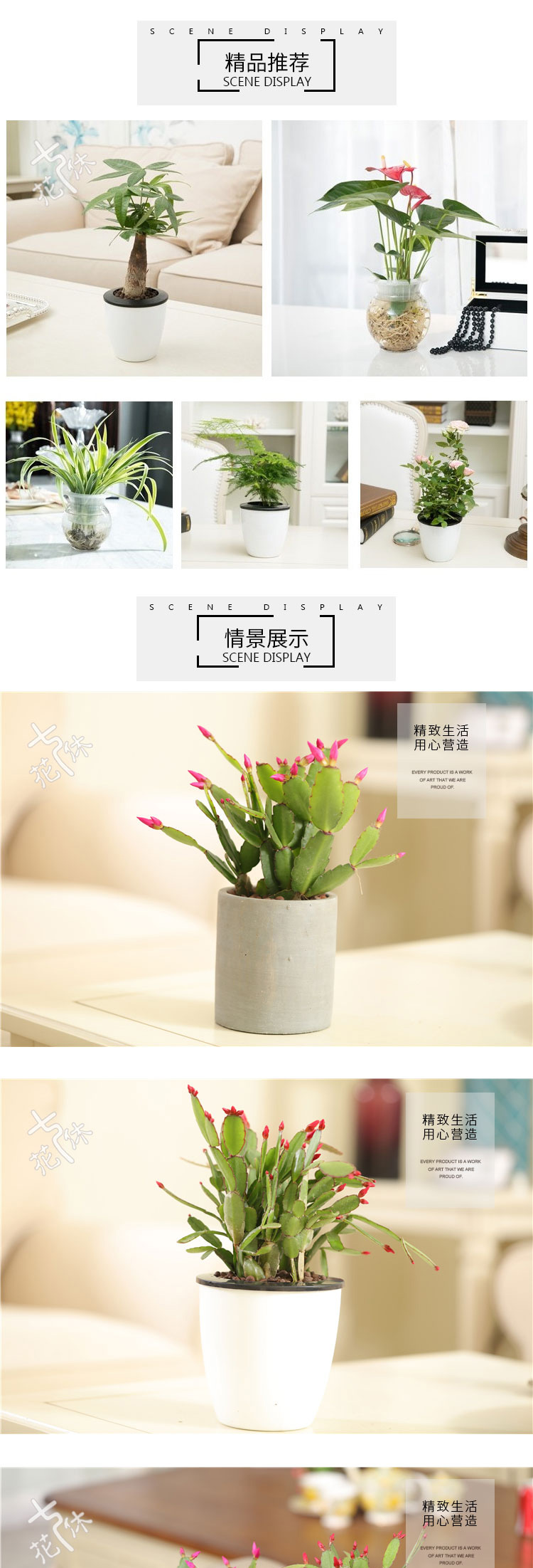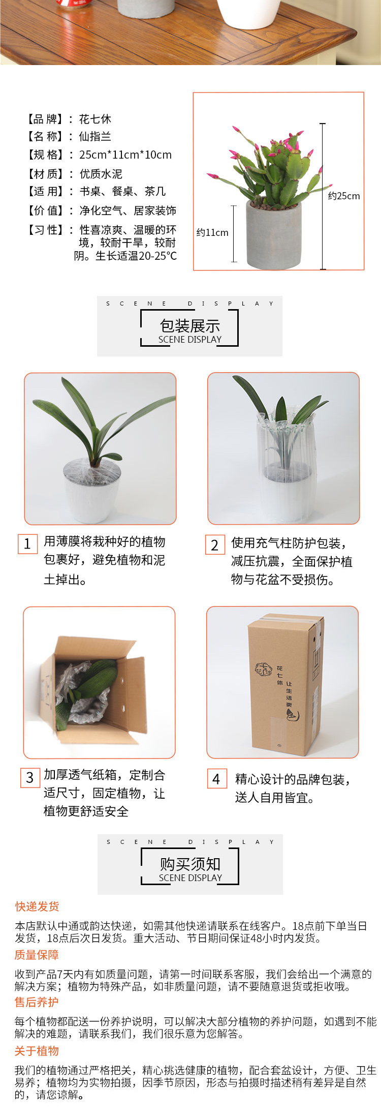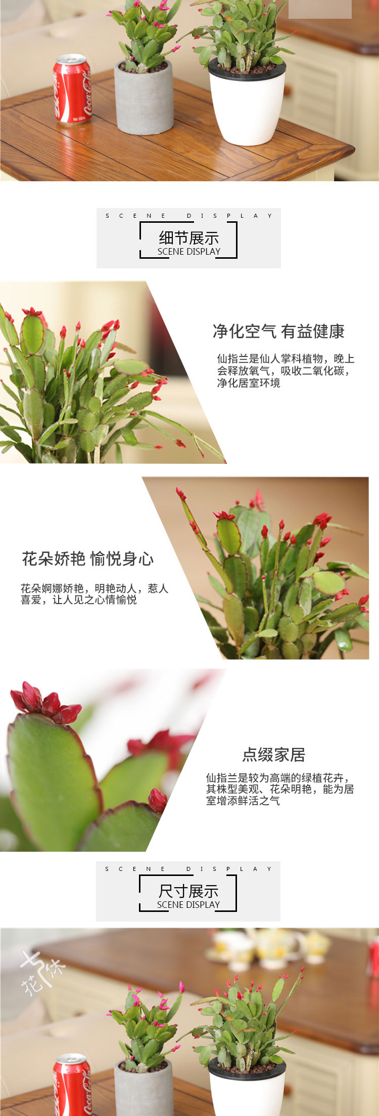 是否含花盆:含盆;适用空间:庭院,阳台,客厅,办公桌,卧室,书房;包装清单:蟹爪莲×1、水泥花盆×1、包装箱×1;