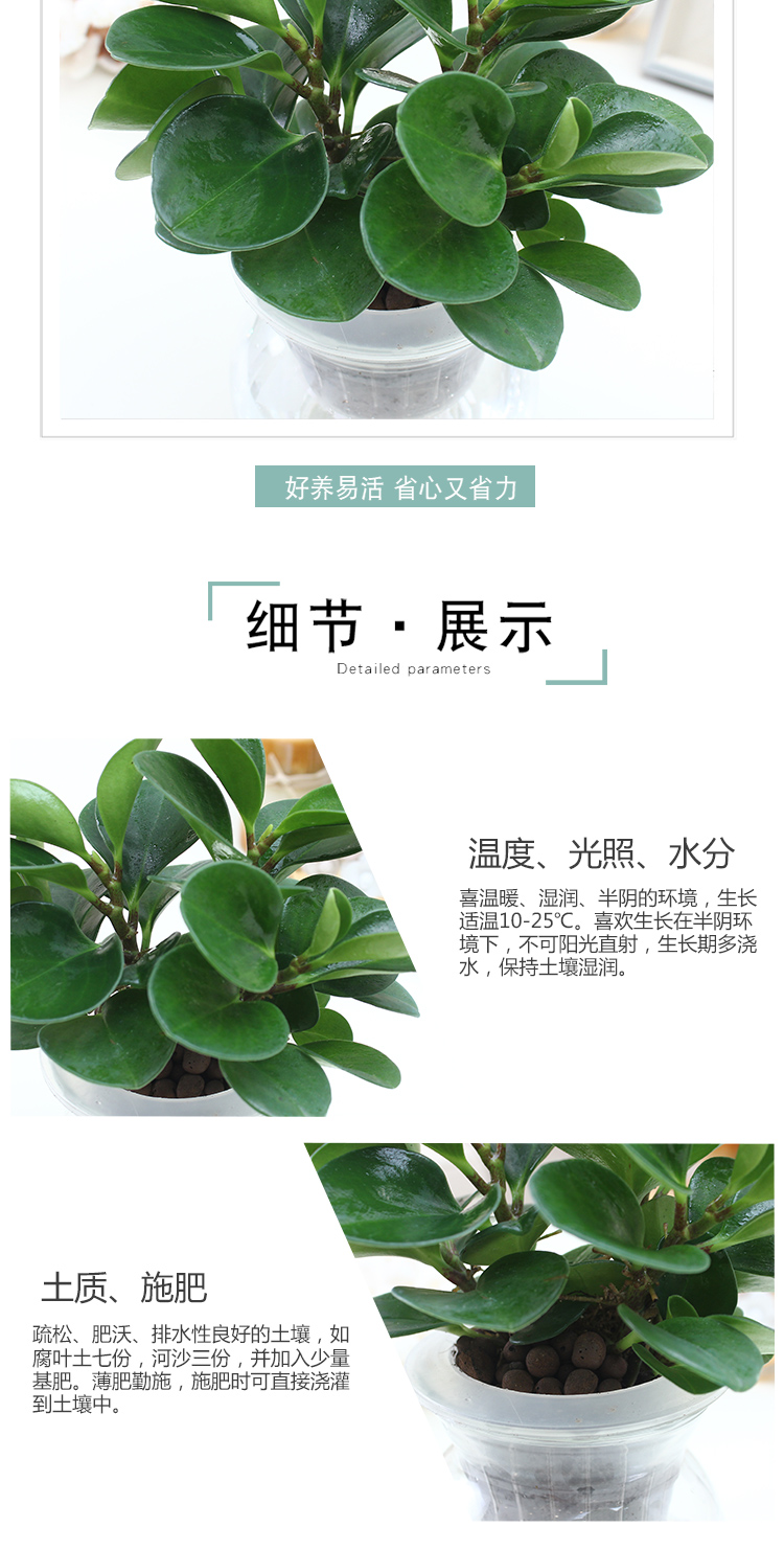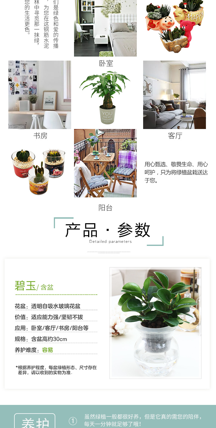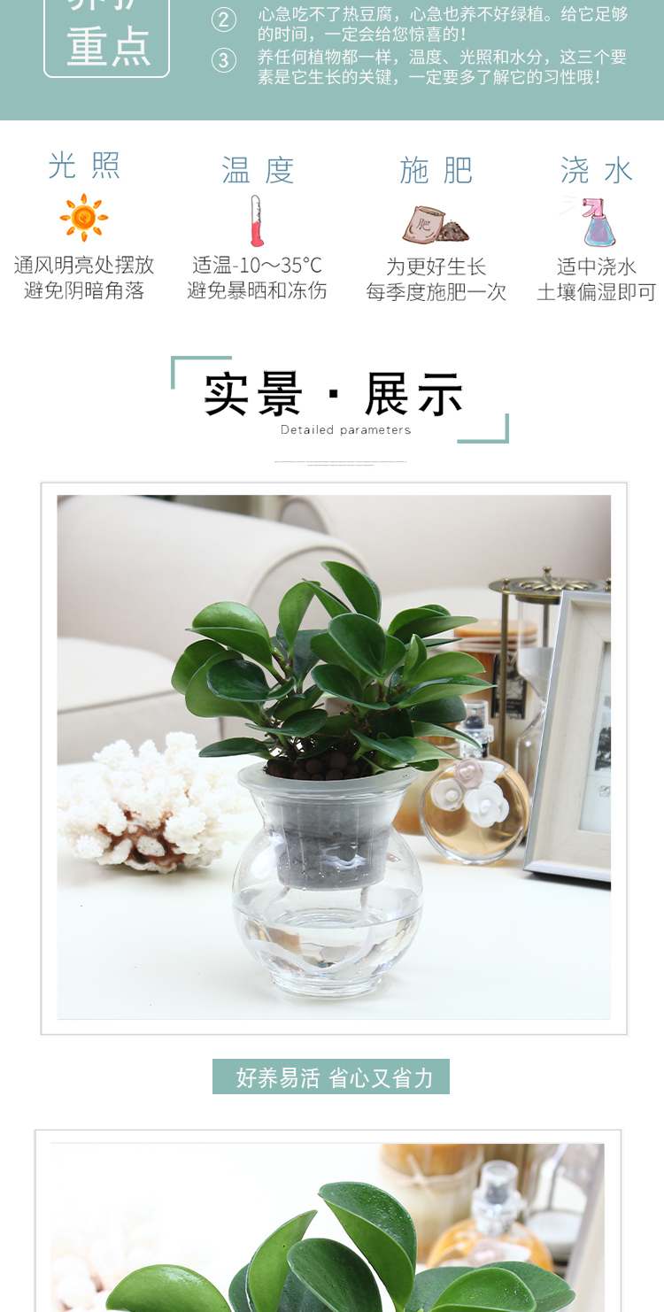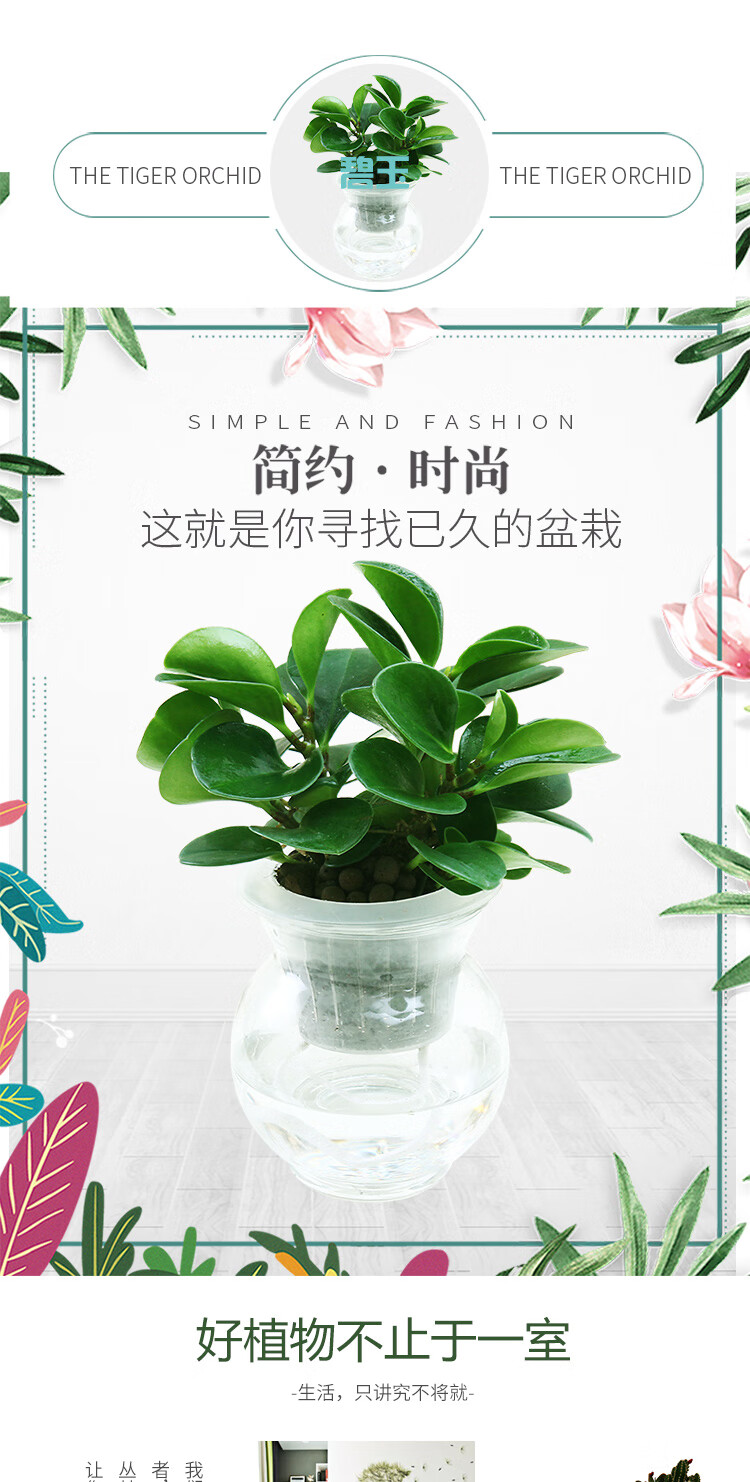是否含花盆:带盆栽好;适用空间:庭院,阳台,客厅,办公桌,卧室,书房;植物品种:豆瓣绿;植物类别:观叶植物;包装清单:水培系列—碧玉*1,花盆*1,包装箱*1;