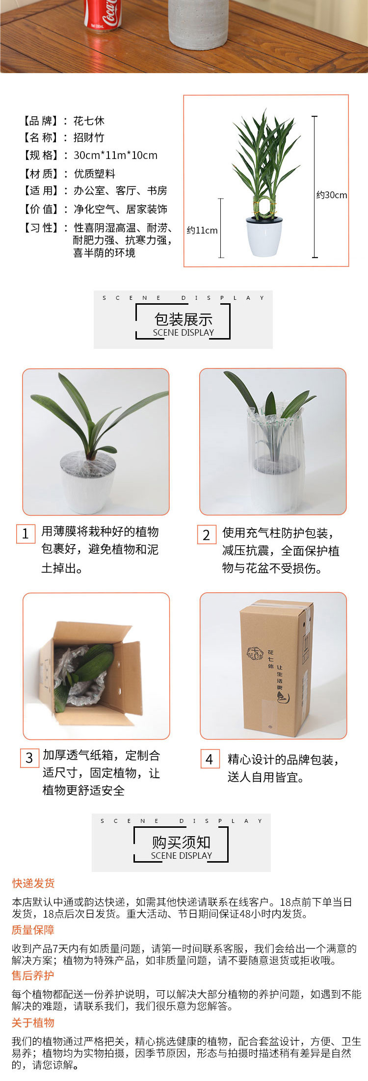 是否含花盆:带盆栽好;适用空间:庭院,阳台,客厅,办公桌,卧室,书房;包装清单:招财竹*1,花盆*1,包装箱*1;