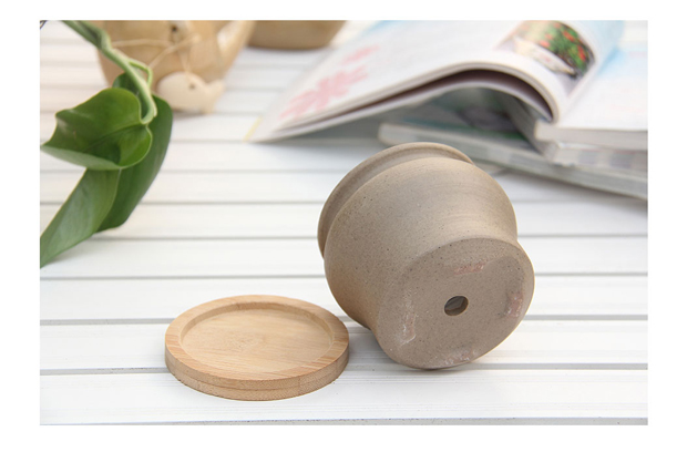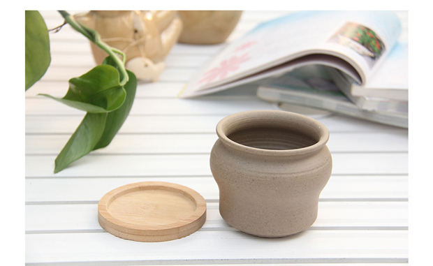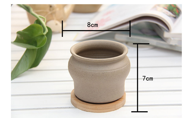 风格:简约;附加功能:其它;尺寸:小;材质:陶瓷;适用空间:桌面;包装清单:花盆X1,木托X1;