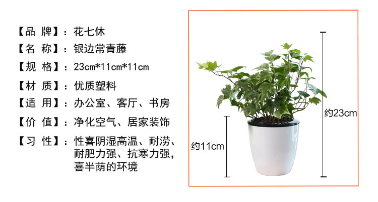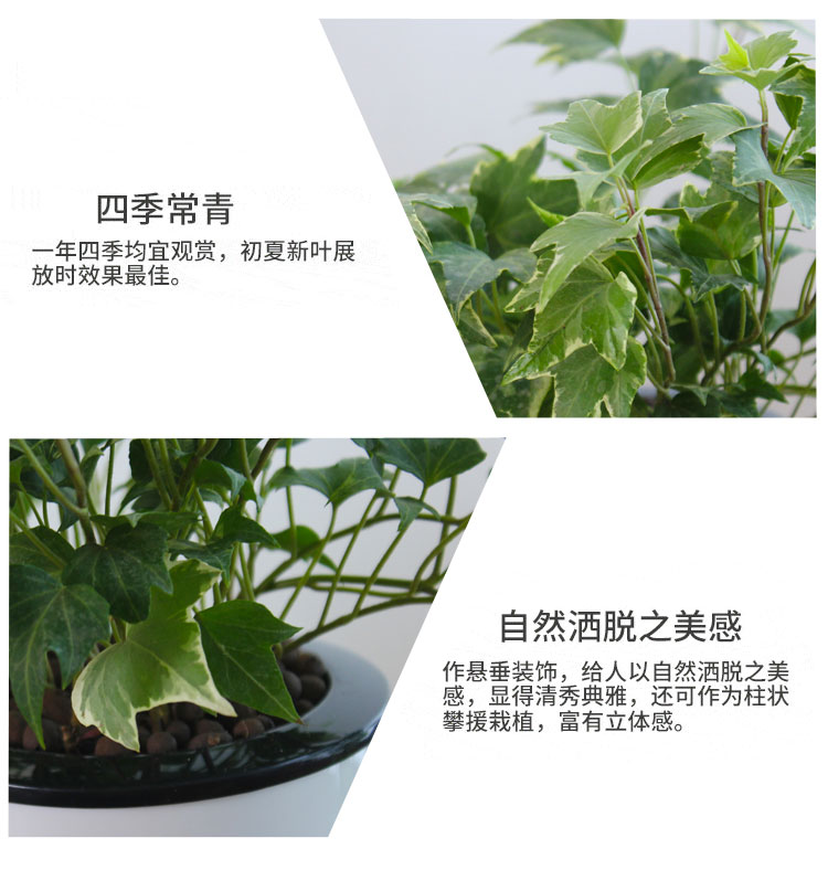 是否含花盆:带盆栽好;适用空间:庭院,阳台,客厅,办公桌,卧室,书房;包装清单:银边常青藤*1,花盆*1,包装箱*1;