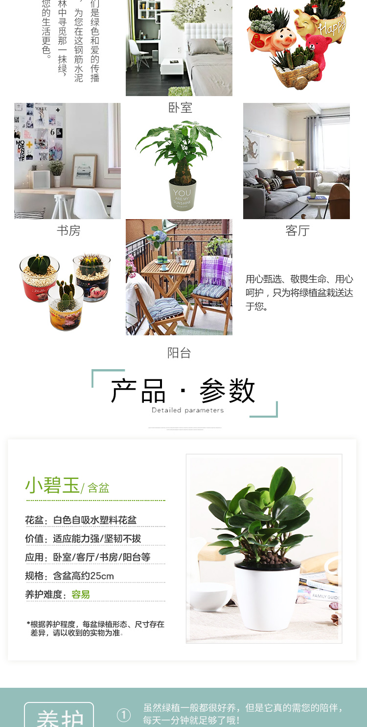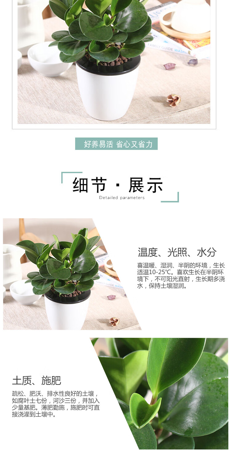 是否含花盆:带盆栽好;适用空间:庭院,阳台,客厅,办公桌,卧室,书房;植物品种:豆瓣绿;植物类别:观叶植物;包装清单:小碧玉*1,花盆*1,包装箱*1;