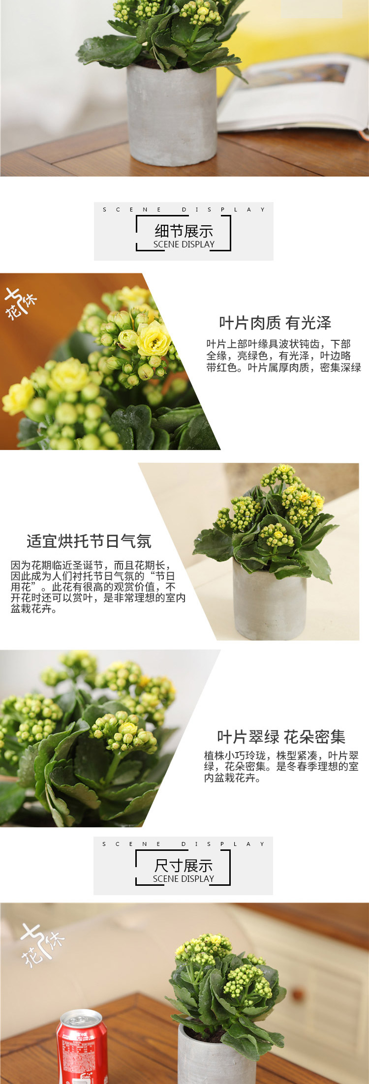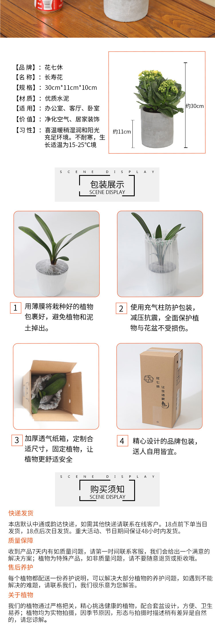 是否含花盆:含盆;适用空间:庭院,阳台,客厅,办公桌,卧室,书房;包装清单:长寿花×1、水泥花盆×1、包装箱×1;