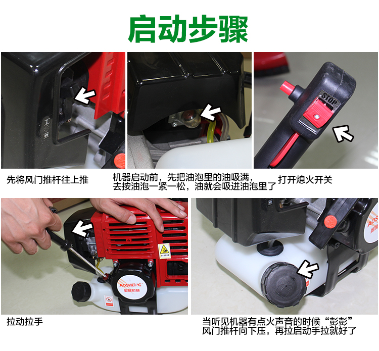 适用对象:其它,草坪;机械类型:割灌割草机;动力类型:二冲程;包装清单:主机*1,三角刀片*1,打草头*1,打草绳*1,40T合金刀片*1,挡草罩总成*1,配比壶*1,套筒扳手*1,内六角扳手*1,内六角扳手*1,呆扳手*1,中文说明书*1,合格证*1,三包凭证*1;