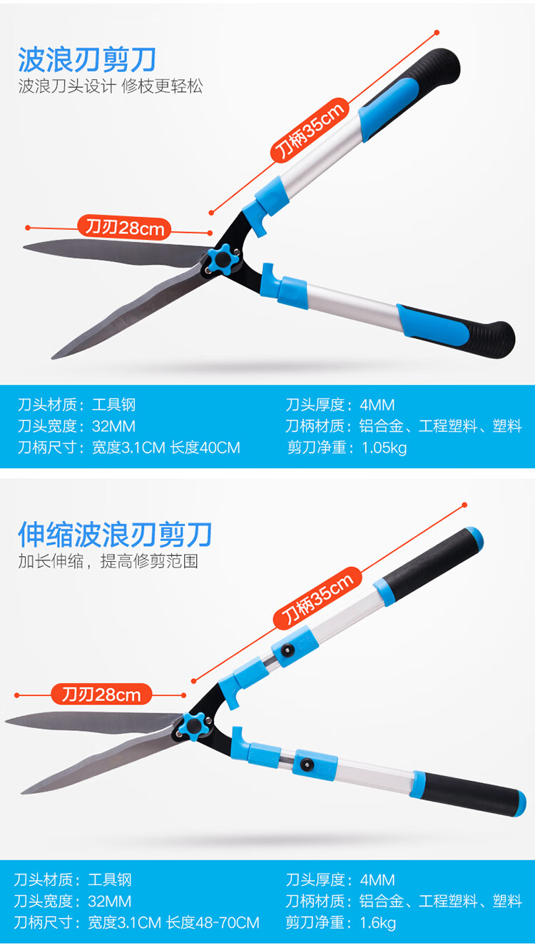 分类:刀/剪/锯;品牌:农宝;包装清单:多用铝合金杆大剪X1;
