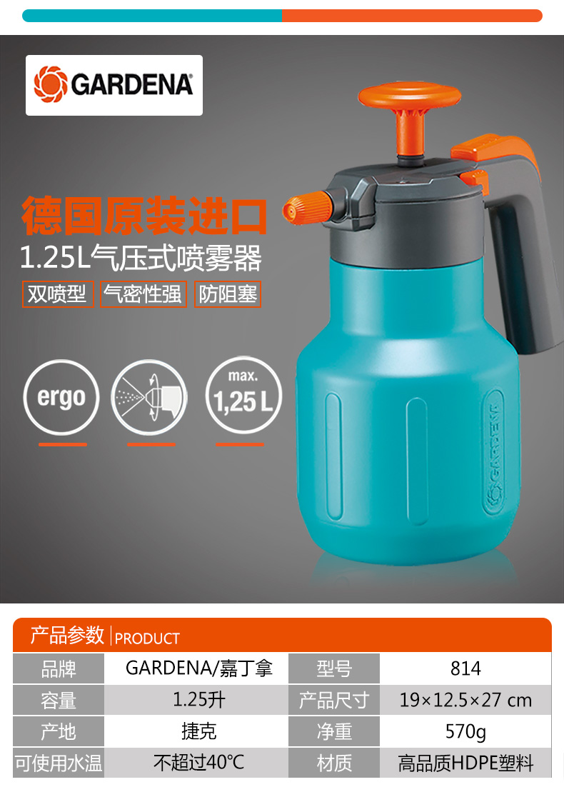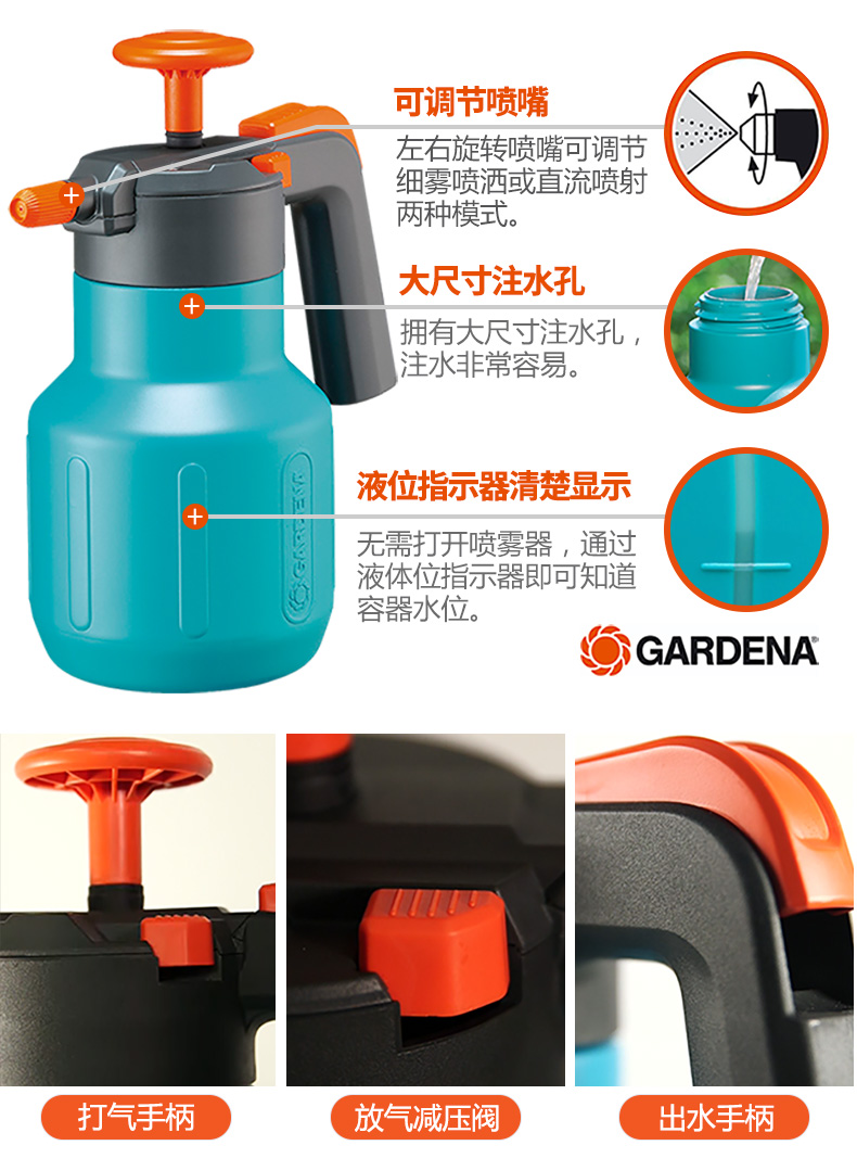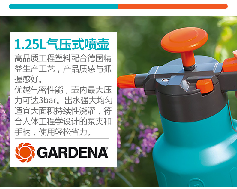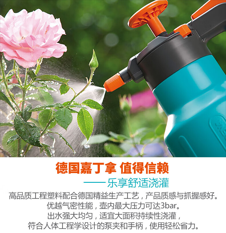 铲/耙/锹/锄:其它;洒水浇水壶:喷壶;分类:洒水浇水壶;材质:塑料;刀/剪/锯:其它;产地:进口;品牌:嘉丁拿(GARDENA);包装清单:进口喷壶*1;