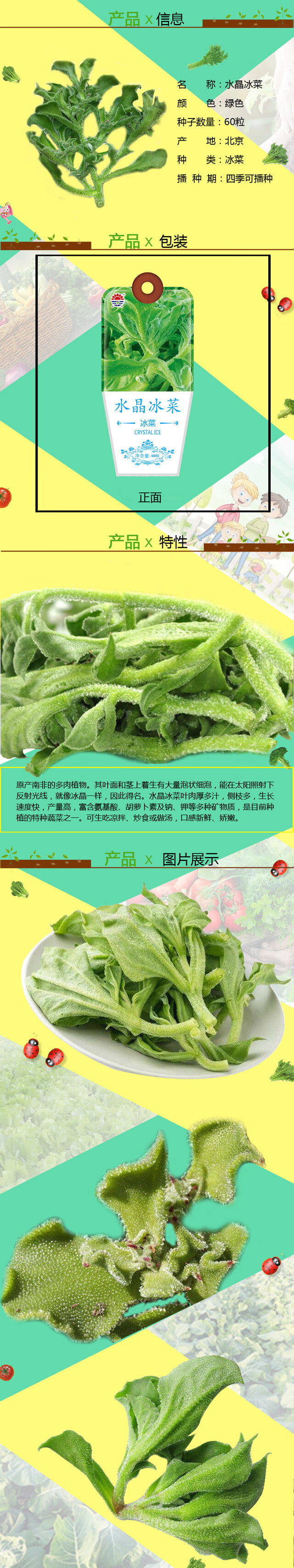 北京东升种业(DS)水晶冰菜种子 四季蔬菜 家庭阳台 庭院种植60粒/袋