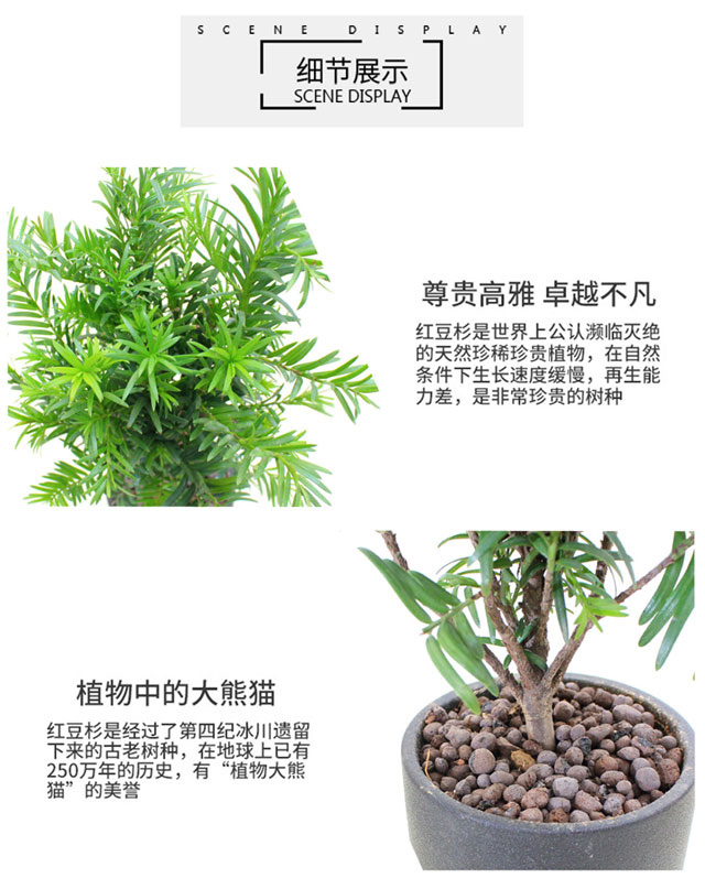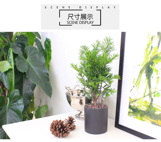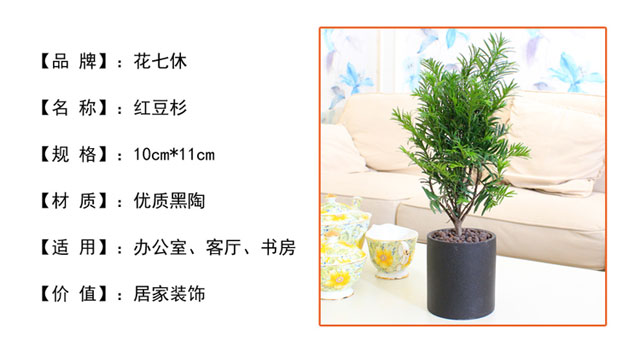 是否含花盆:含盆;适用空间:庭院,阳台,客厅,办公桌,卧室,书房;包装清单:红豆杉×1、 黑陶花盆×1、包装箱×1;