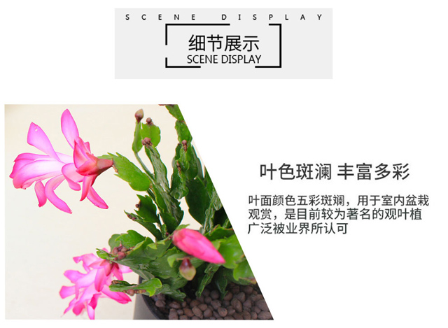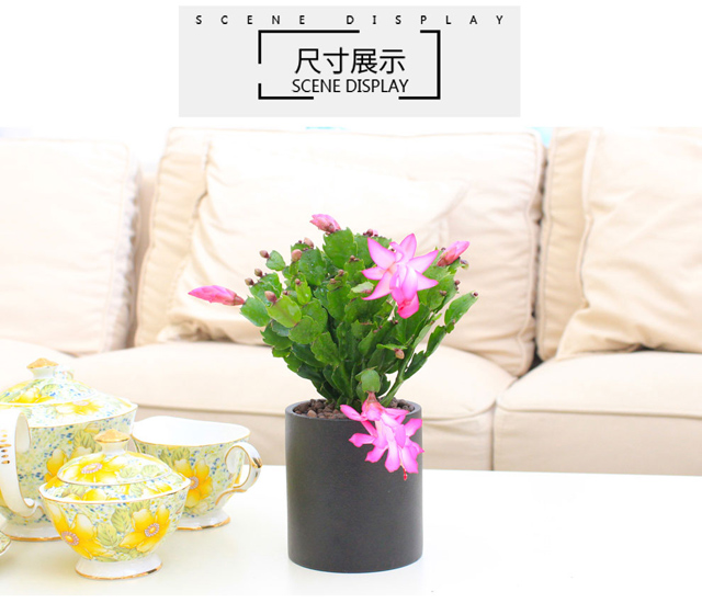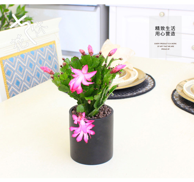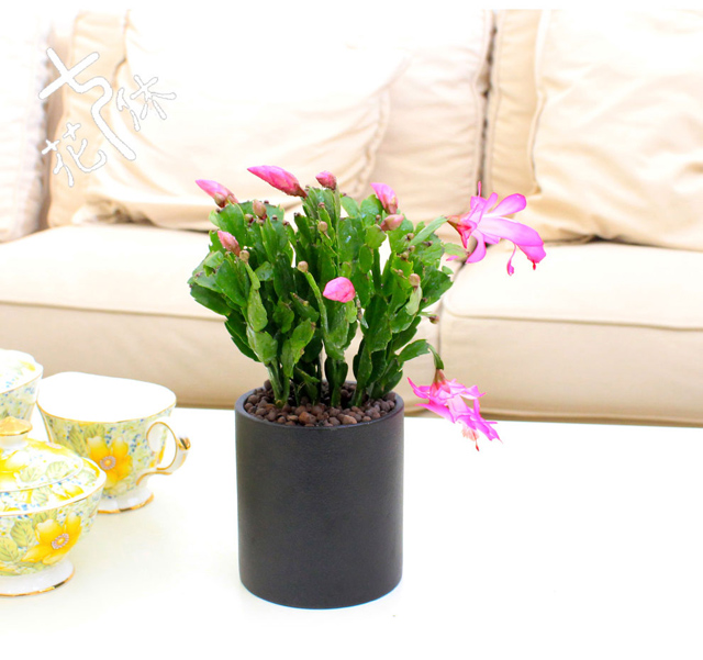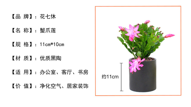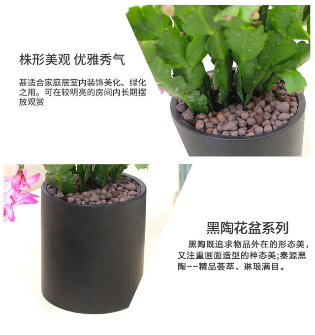 是否含花盆:含盆;适用空间:庭院,阳台,客厅,办公桌,卧室,书房;包装清单:蟹爪莲×1、黑陶花盆×1、包装箱×1;