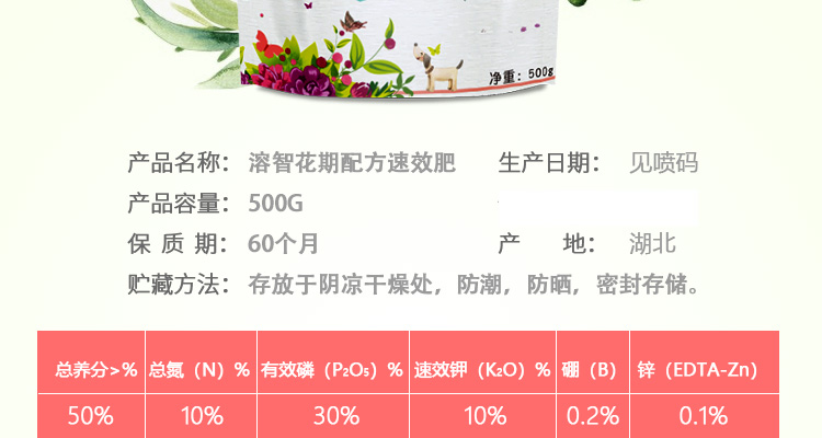 性状:固体;营养类型:水溶性肥料;适用对象:兰科植物,通用型,水培型,观花植物,盆景;品牌:溶智;包装清单:500g/袋,30袋/箱;