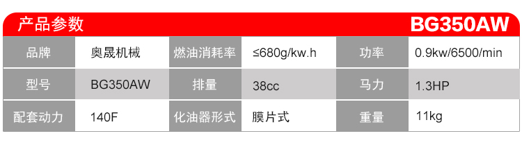 适用对象:其它,草坪;机械类型:割灌割草机;动力类型:四冲程;包装清单:主机*1,三角刀片×1,打草头×1,打草绳*1,合金刀片*1,4T机油*1,挡草罩总成×1,半圆自攻螺钉×3,小刀片×1,19管夹×1,机油漏斗×1,套筒扳手×1,内六角扳手S=4×1,内六角扳S=5×1,呆扳手×1,中文说明书×1,合格证×1,三包凭证×1;