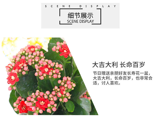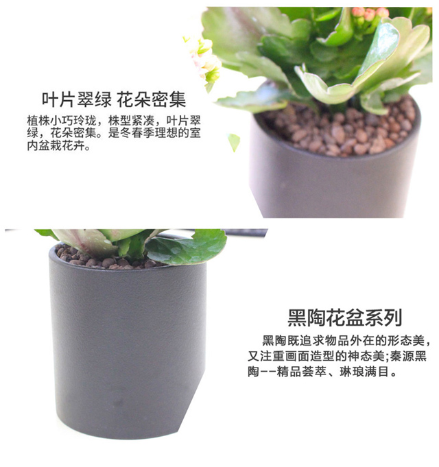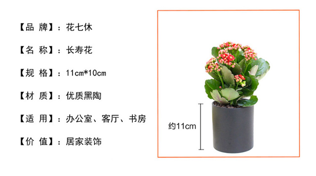 是否含花盆:含盆;适用空间:庭院,阳台,客厅,办公桌,卧室,书房;包装清单:长寿花×1、 黑陶花盆×1、包装箱×1;