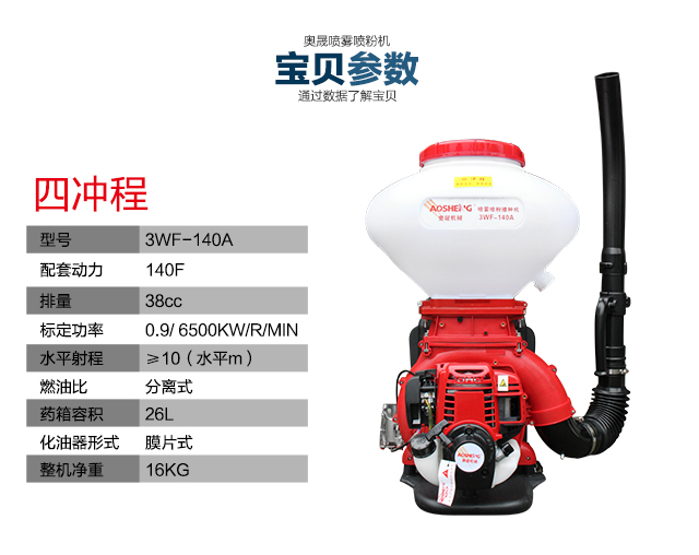 适用对象:草坪,其它;机械类型:打药机;动力类型:四冲程;包装清单:大软管×1,长直管总成×1,长弯管×1,喷头总成×1,喷嘴×1,播种管总成×1,喷粉盖板×1,下粉隔板×1静电链卡子×1,静电链×1,线扎(细),药箱下盖×1,配比壶×1,水开关×1,手把钢管×1,提拔夹板总成×1,透明软管×2,卡环×4,卡箍×1,卡箍×1,漏斗×1,单头套筒扳手×1,双头呆扳手8-10×1,双头呆扳手12-14×1,内六角扳手S=4×1,内六角扳手S=5×1,,中文说明书×1,;