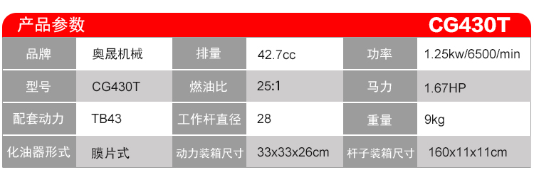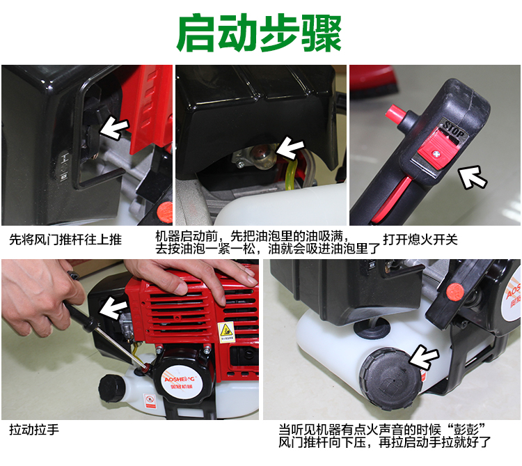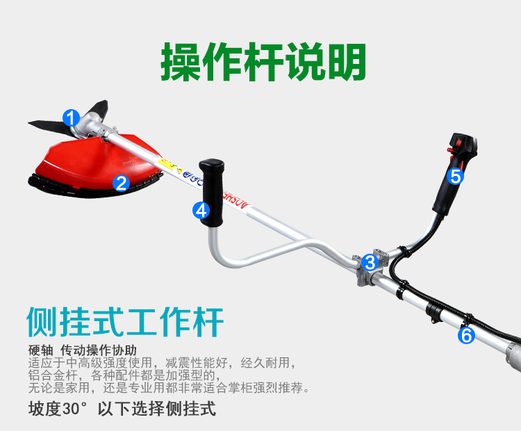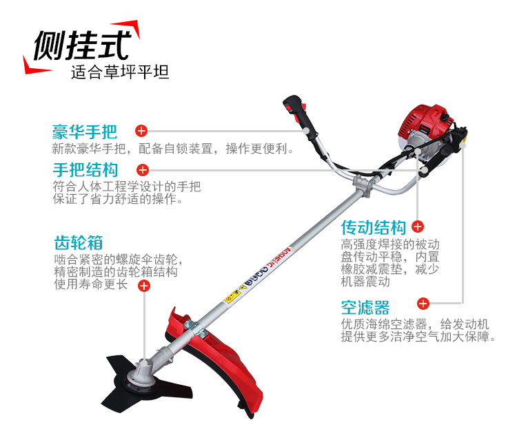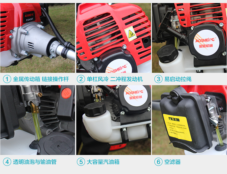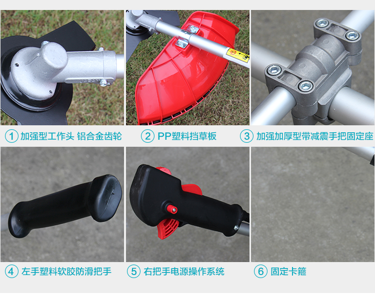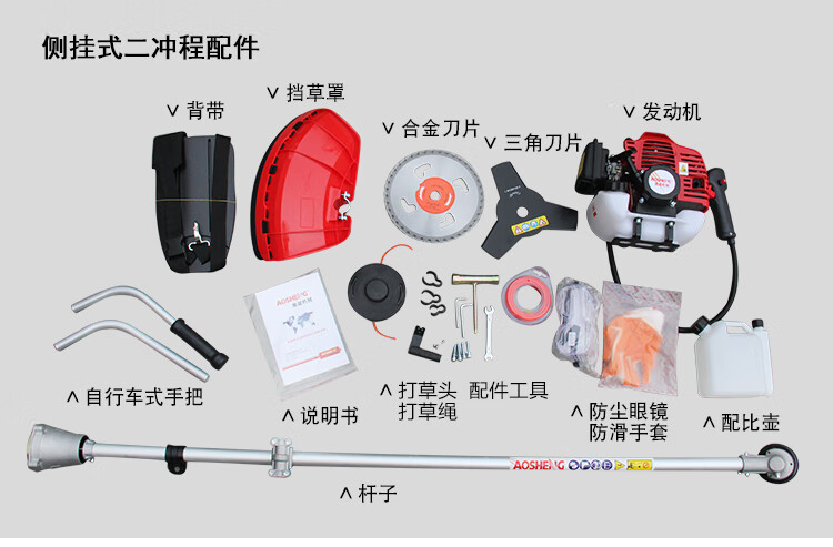 适用对象:草坪,其它;机械类型:割灌割草机;动力类型:二冲程;包装清单:三角刀片×1,打草头×1,挡草罩总成×1,单间背带×1,配比壶×1,套筒扳手×1,呆扳手×1,内六角扳手×1,内六角扳手×1,中文说明书×1,合格证×1,三包凭证×1;