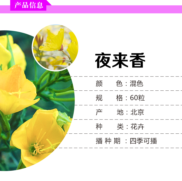 种类:草花;适种区域:东北,华北,华中,华东,华南,西南,西北;适播季节:春,夏,秋,冬;国别:国产;类别:常规种子;种子经营许可证编号:CD(京)农种经许字第(2014)第0025号;包衣:有包衣;生产年份(年):2019年;芽率(%):80;水分(%):8%;净度(%):98%;纯度(%):95%;包装清单:一袋种子X1;