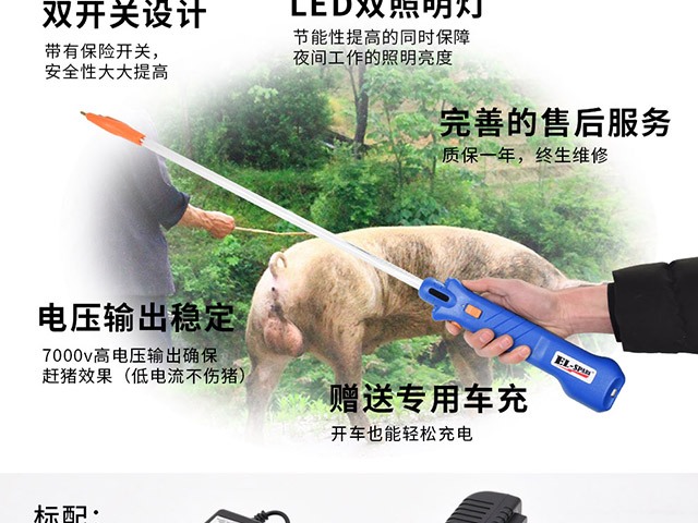 用途:养殖围栏;包装清单:电动赶猪器*1,充电器*2;