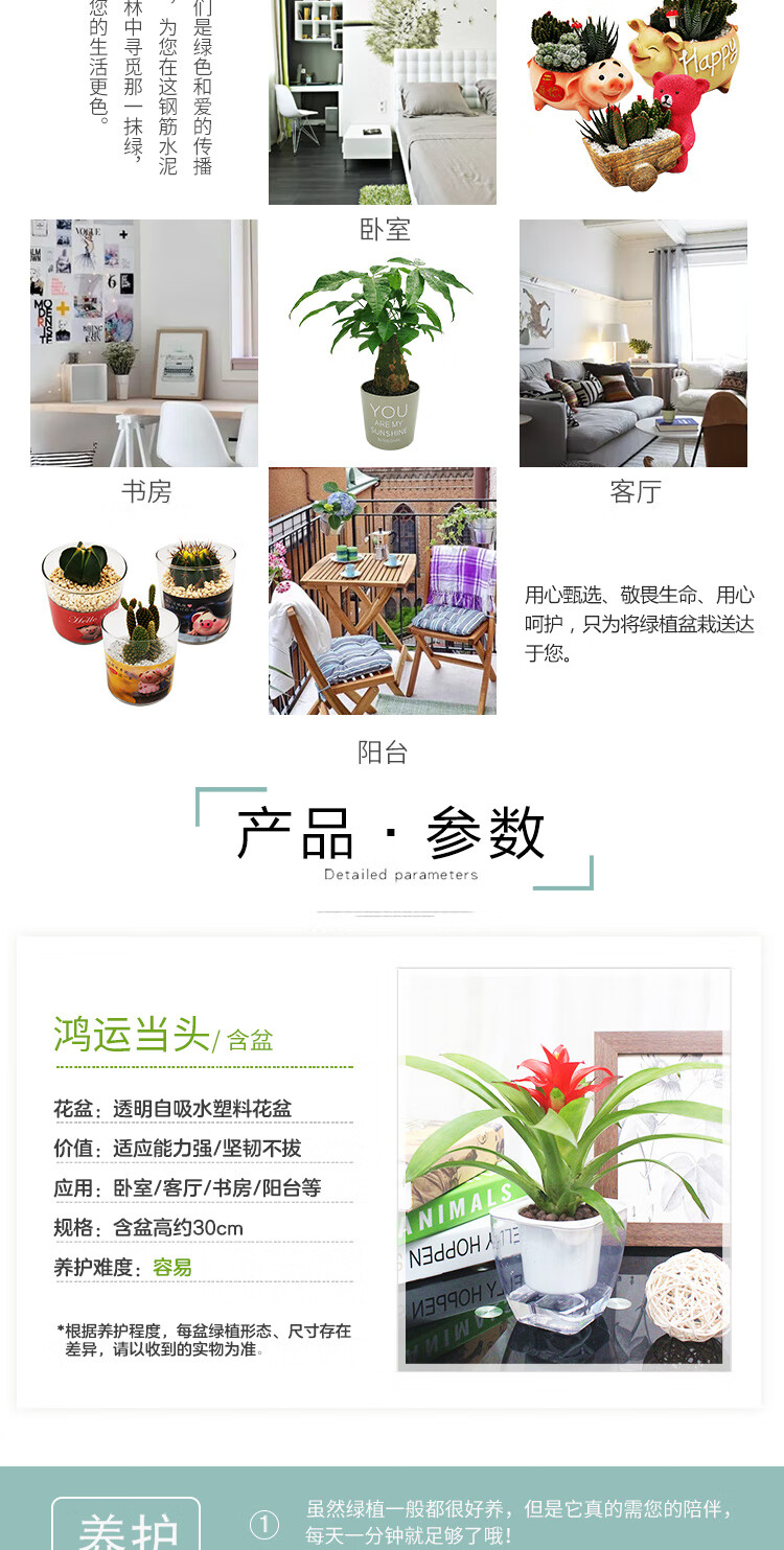 是否含花盆:带盆栽好;适用空间:庭院,阳台,客厅,办公桌,卧室,书房;植物品种:其它;植物类别:观叶植物;包装清单:鸿运当头×1、透明自吸水塑料花盆×1、包装箱×1;